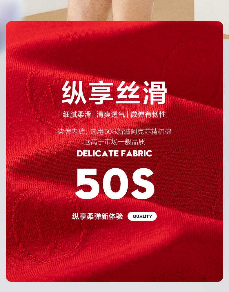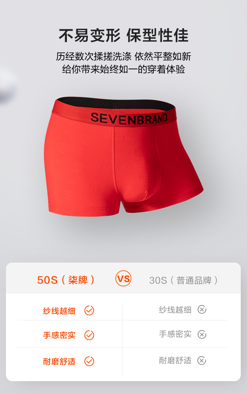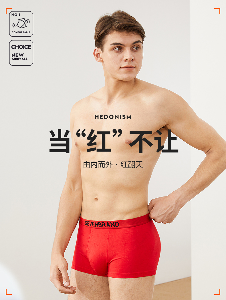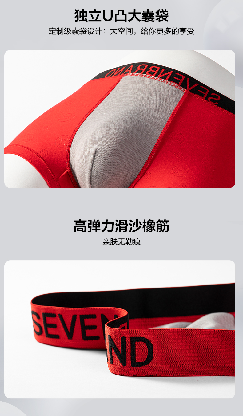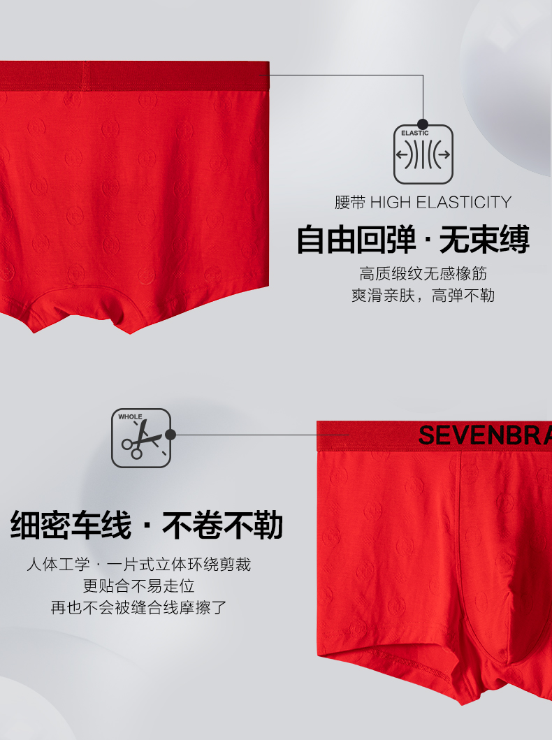 【特价单条装】柒牌内裤男士本命年属牛大红色莫代尔平角裤喜庆结婚四角短裤内裤 121F70190