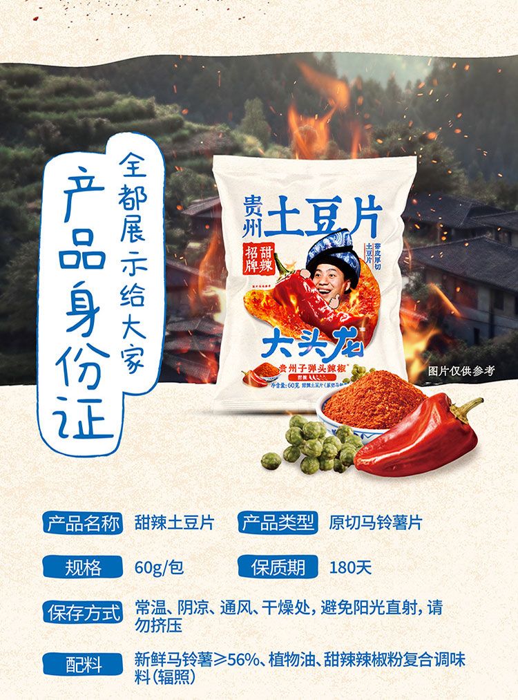大头龙甜辣土豆片,绝对是洋芋国的神、土豆届的权威,正宗贵州特色风味,辣得有劲,而且是原切带皮厚片,超有嚼劲,越吃越停不下来!