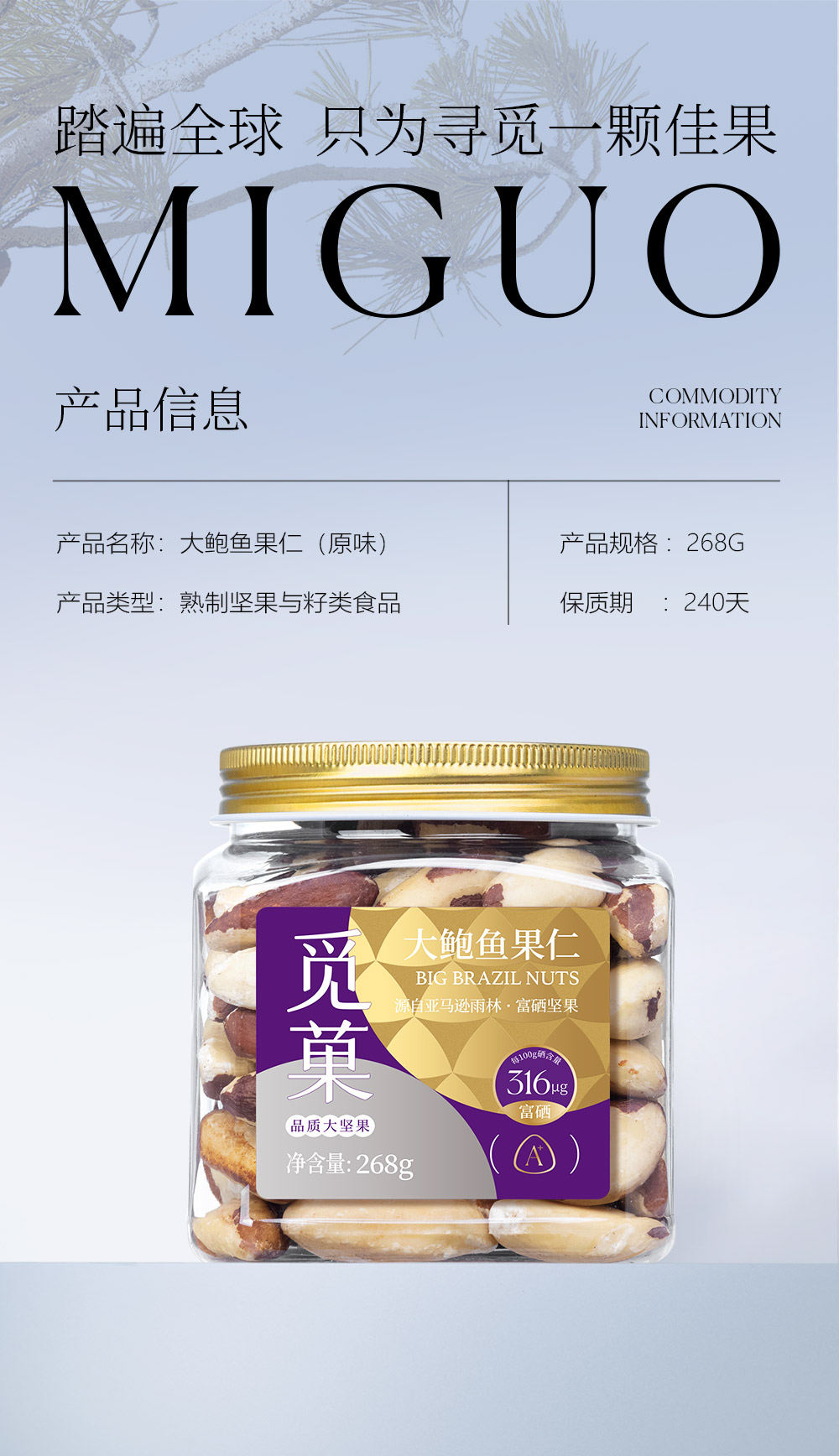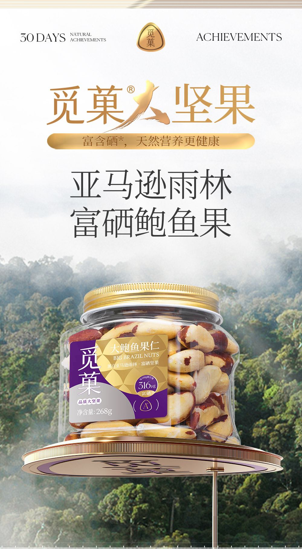 觅菓富硒补硒特大颗粒268g每日原味孕妇罐装巴西坚果硒元素免疫力