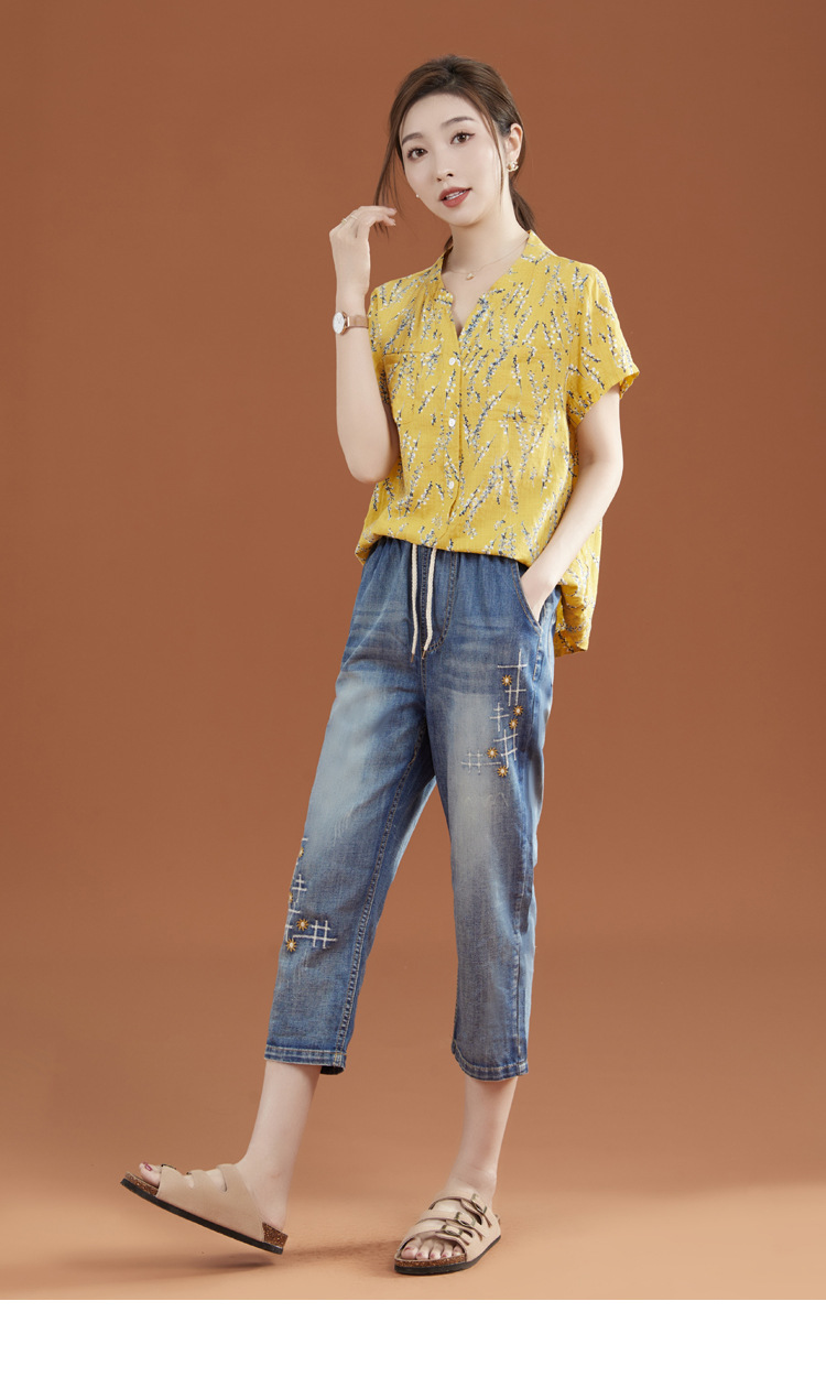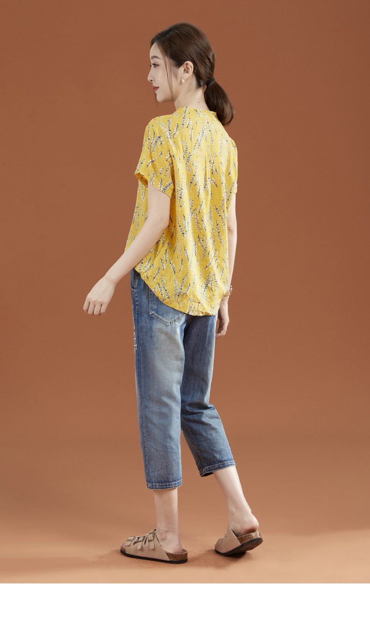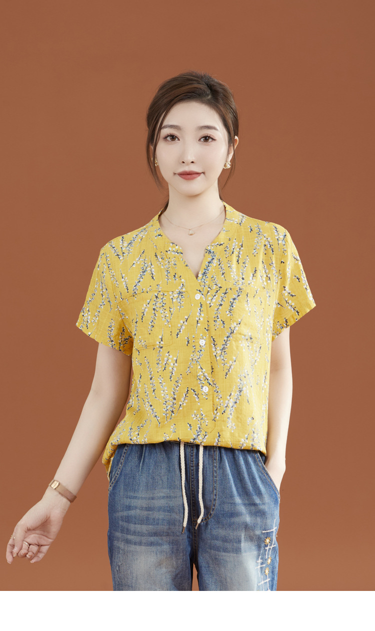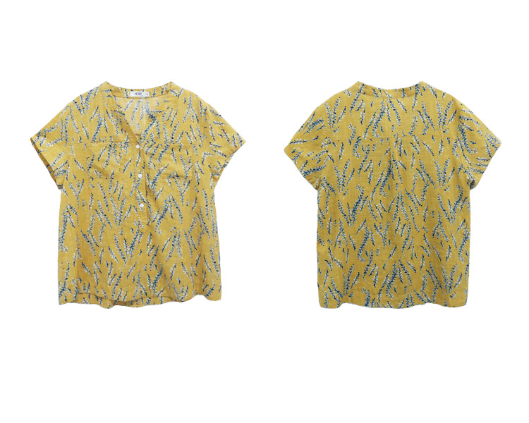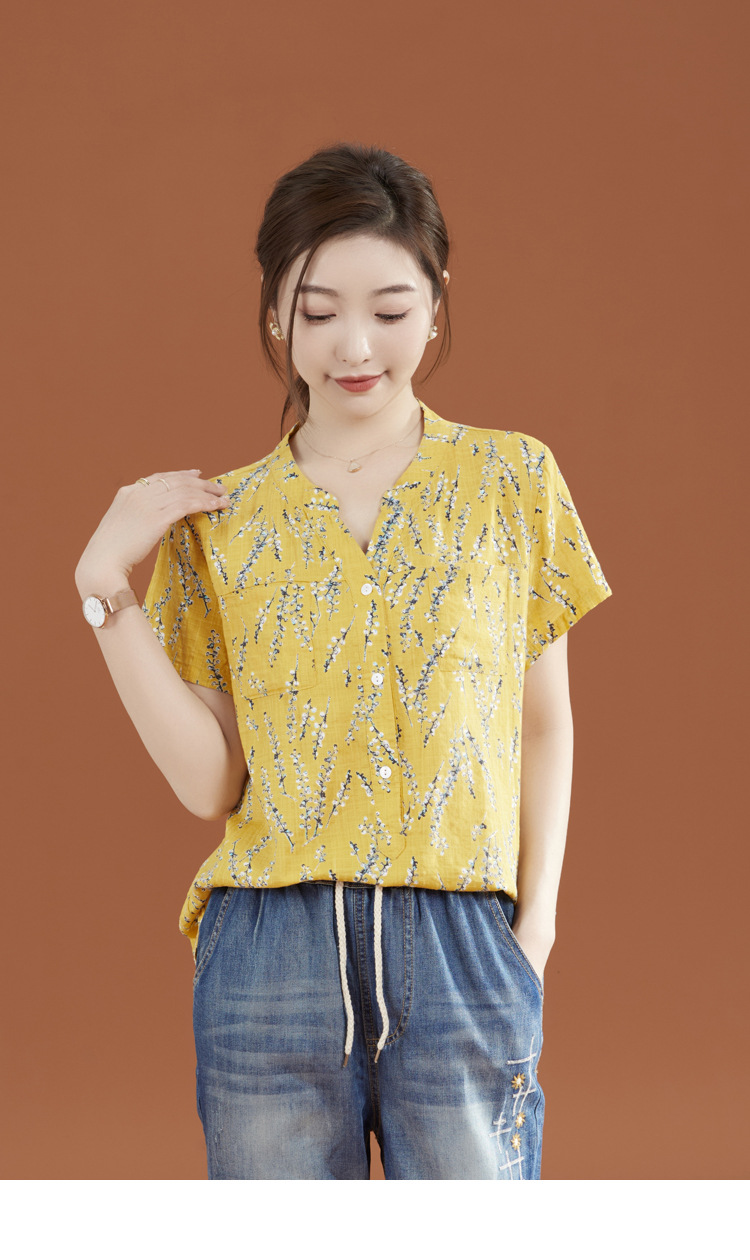 立领棉质碎花休闲短袖衬衣GYM-B0346