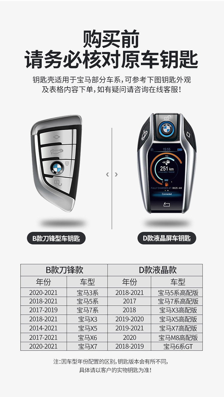 宝马钥匙套7系5系3系6系GT高配版X7X6X5X3M8刀锋钥匙包扣壳液晶屏