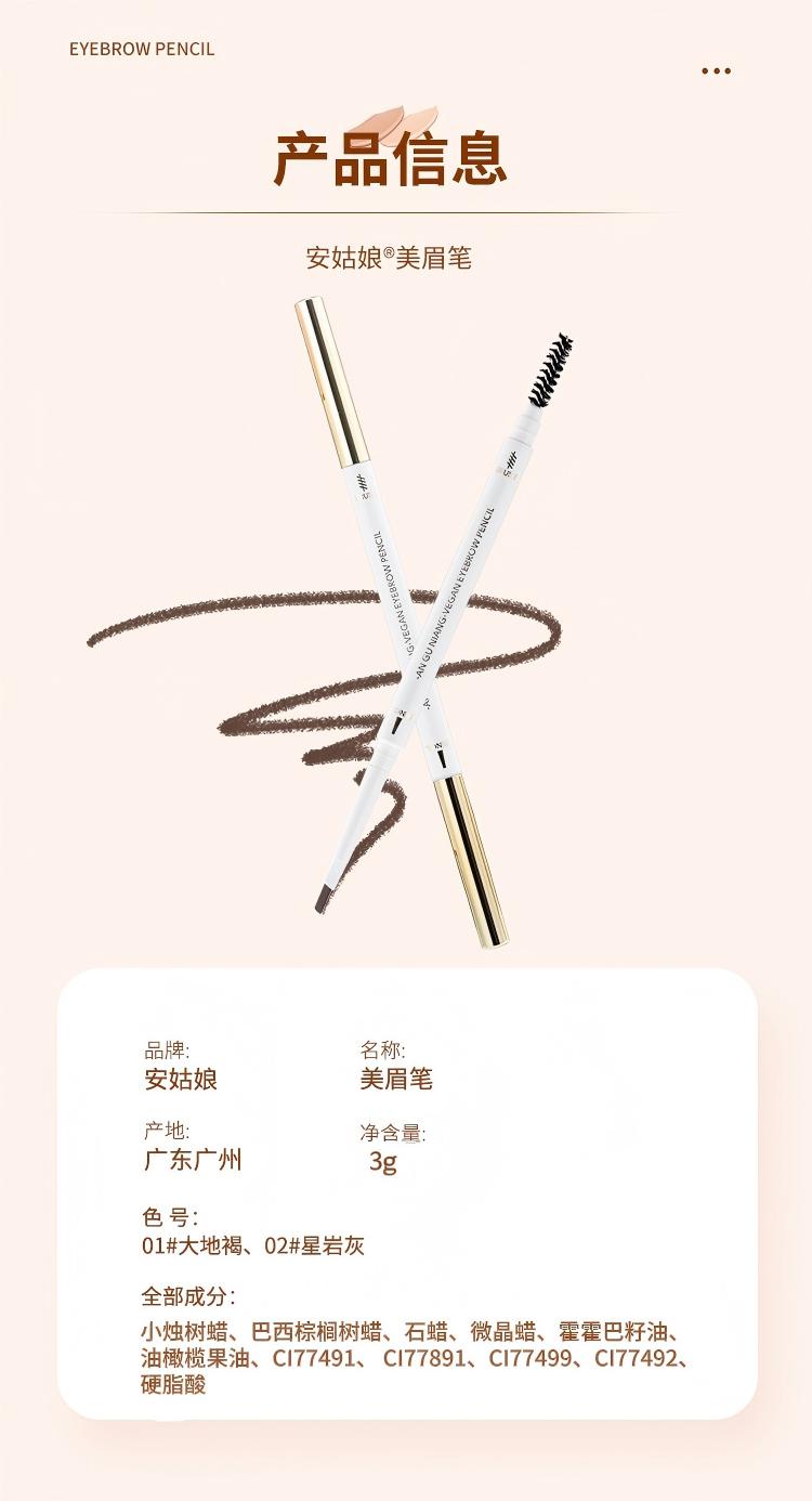 安姑娘美眉笔 流行的极细小三角带眉刷 自然显色持久 新手必备 轻描易显色 3色可选 纯素配方无蜂蜡动物成分