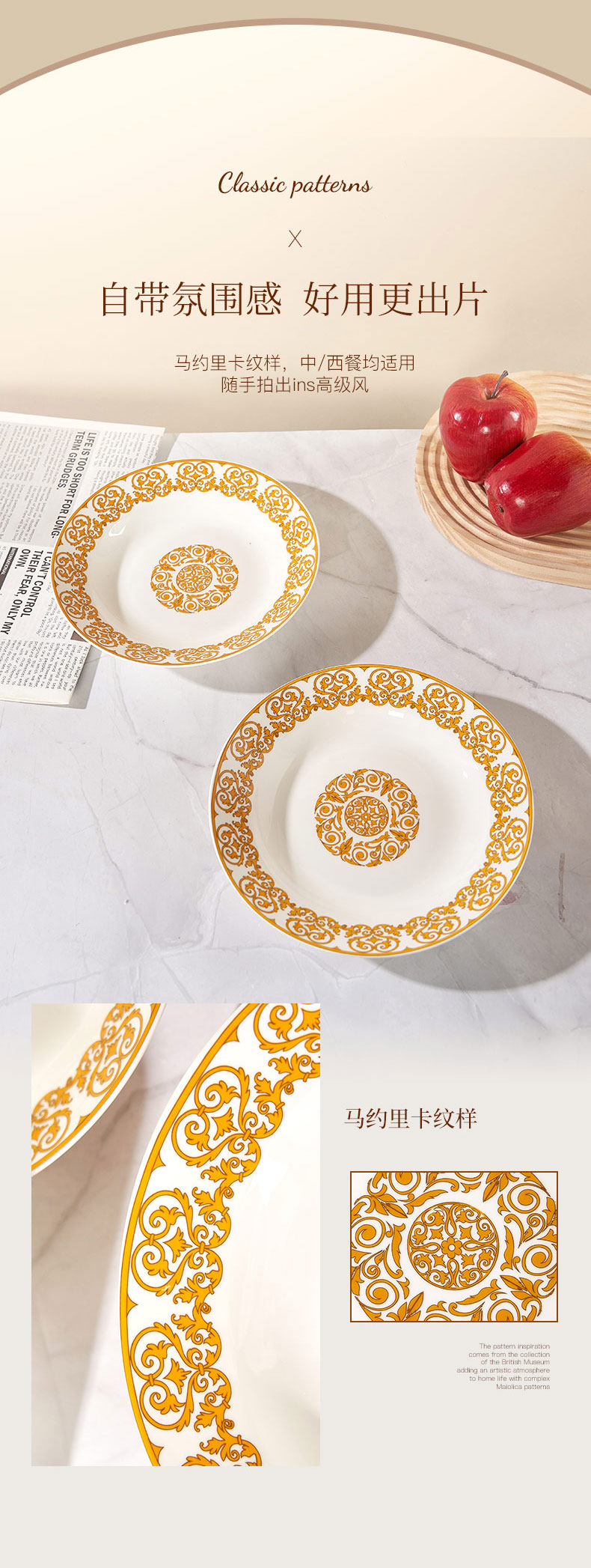 大英博物馆 马约里卡系列 鎏光卷蔓陶瓷盘