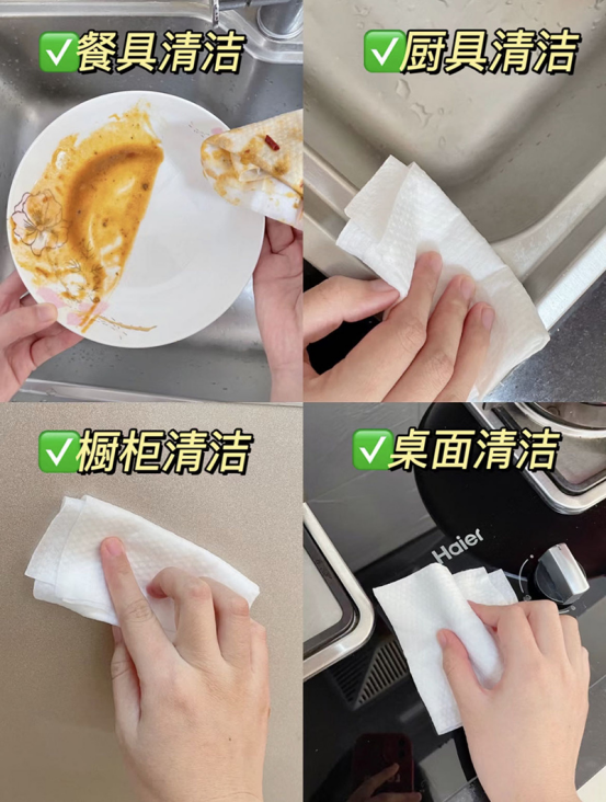 超大的尺寸,足足半臂长! 一张就是一个小抹布,抽取方便 平时擦灶台一张就够了,用完直接丢!