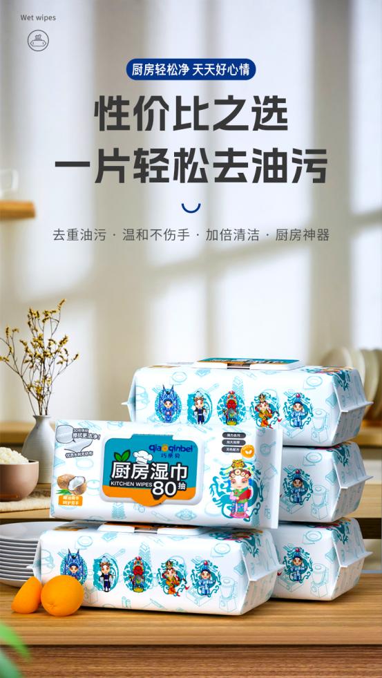 🔥【巧亲贝厨房湿巾】✔️1,80抽/包,🌟创新撕拉盖贴,🔆更卫生,保湿性佳✔️2,无酒精,无防腐剂,🌵无色素,无荧光✔️3,轻松去油污,❤️洁净不伤手💫