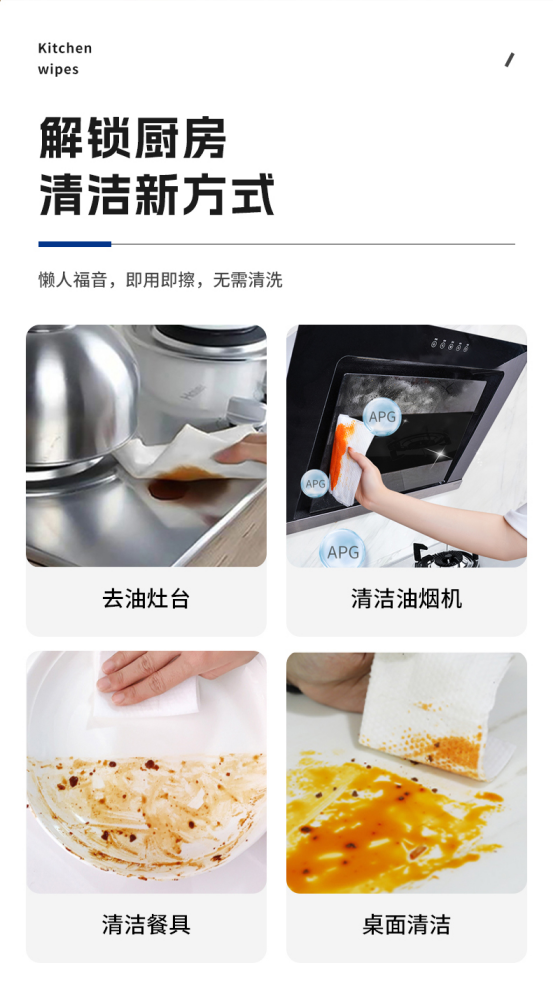 让你的家居清洁事宜更加轻松愉悦!这款清洁湿巾不仅适用于厨房,还可以用于卫生间、客厅等多种场合。让清洁更简单~