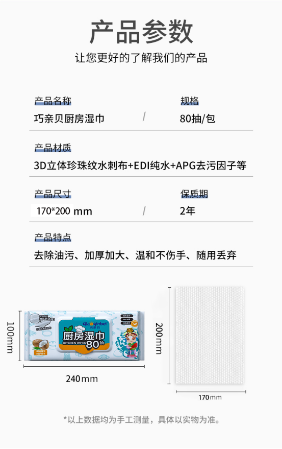 之前用过那么多款厨房湿巾直到用到巧亲贝厨房湿巾我真的是被震撼了👏✨超大的尺寸,一包顶普通湿巾3包