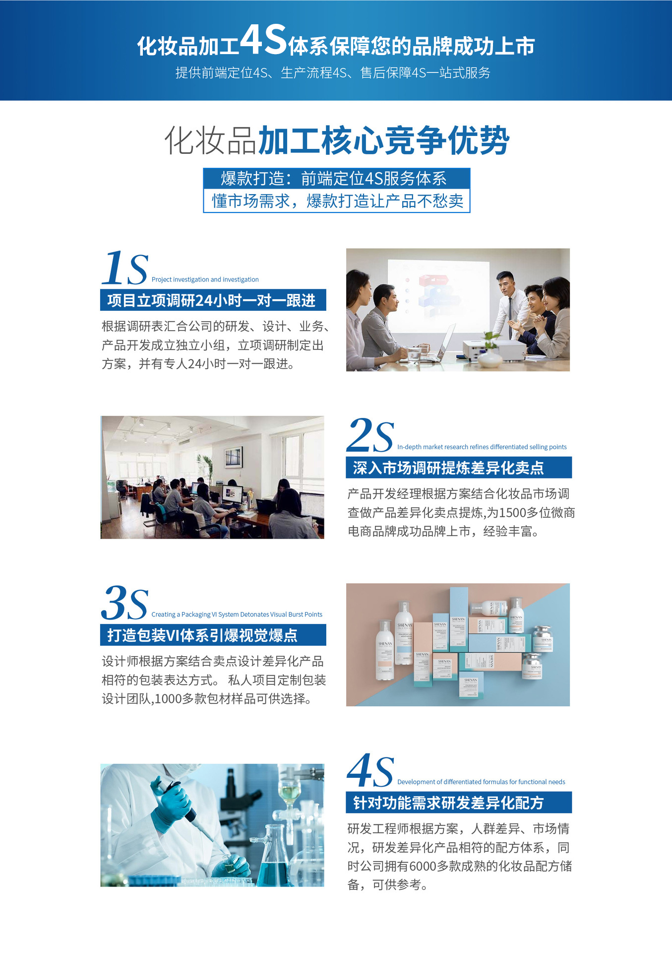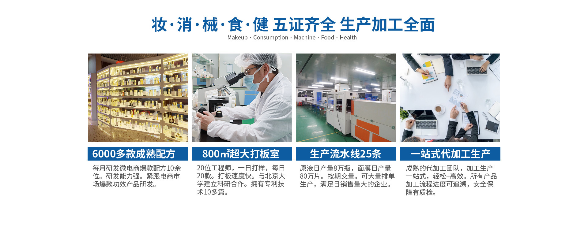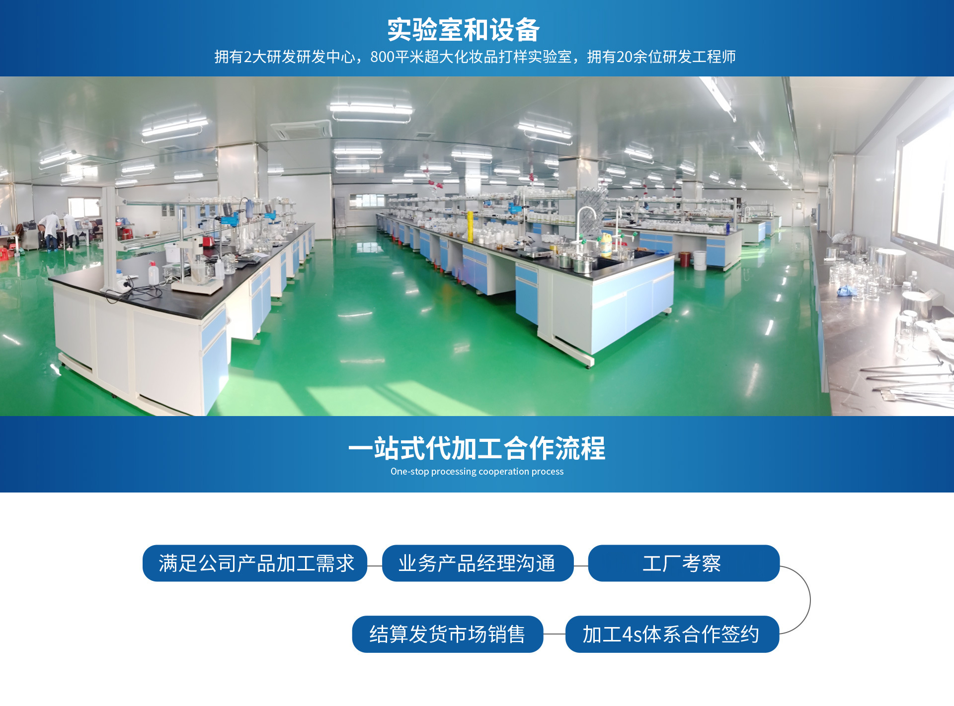 拥有2大研发中心,800平米超大化妆品打样实验室,拥有教授级研发团队
