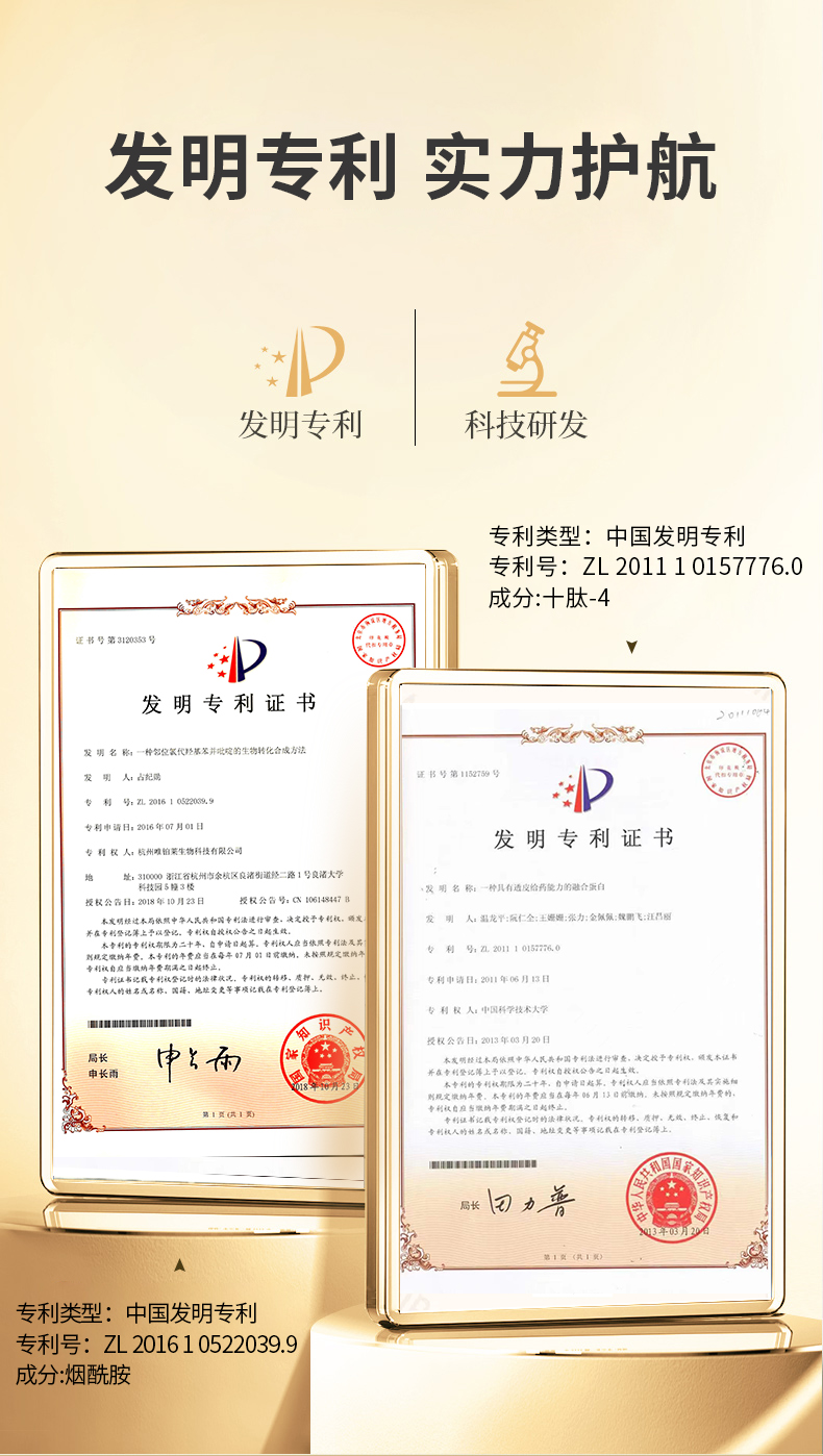 2、研选抗衰全能10大小分子肽,刺激皮肤胶原蛋白的合成,放松面部肌肉、使脸部线条放松,抚平皱纹、改善松弛,紧致面部轮廓;
