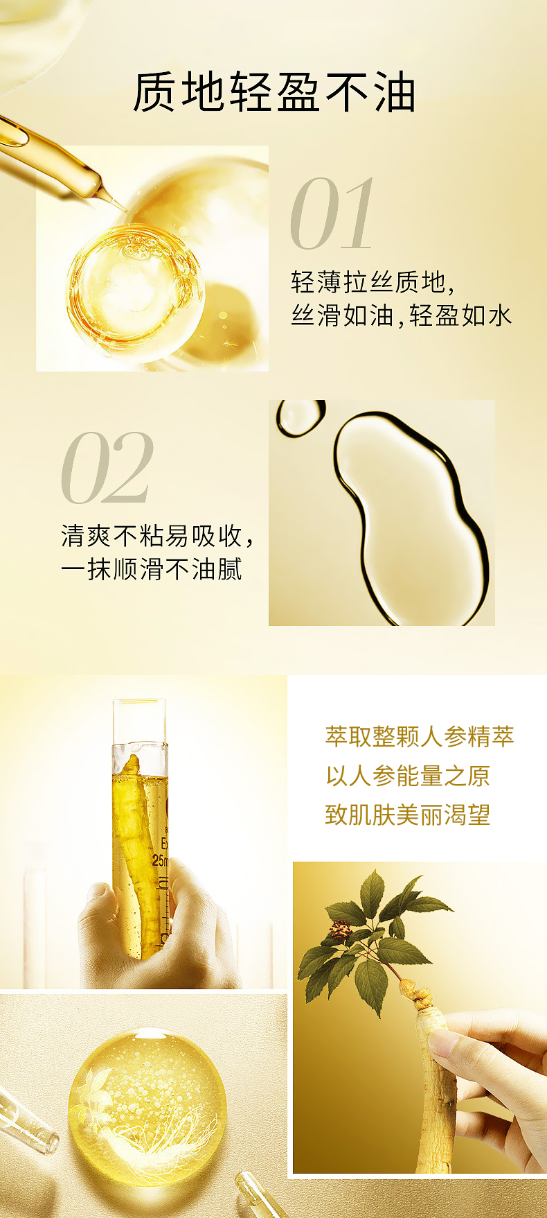以人参精华深层滋养肌肤,修复受损老化肌肤的全功能精华