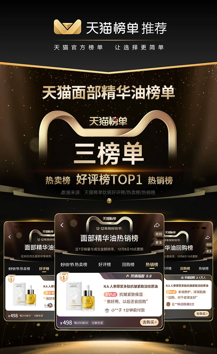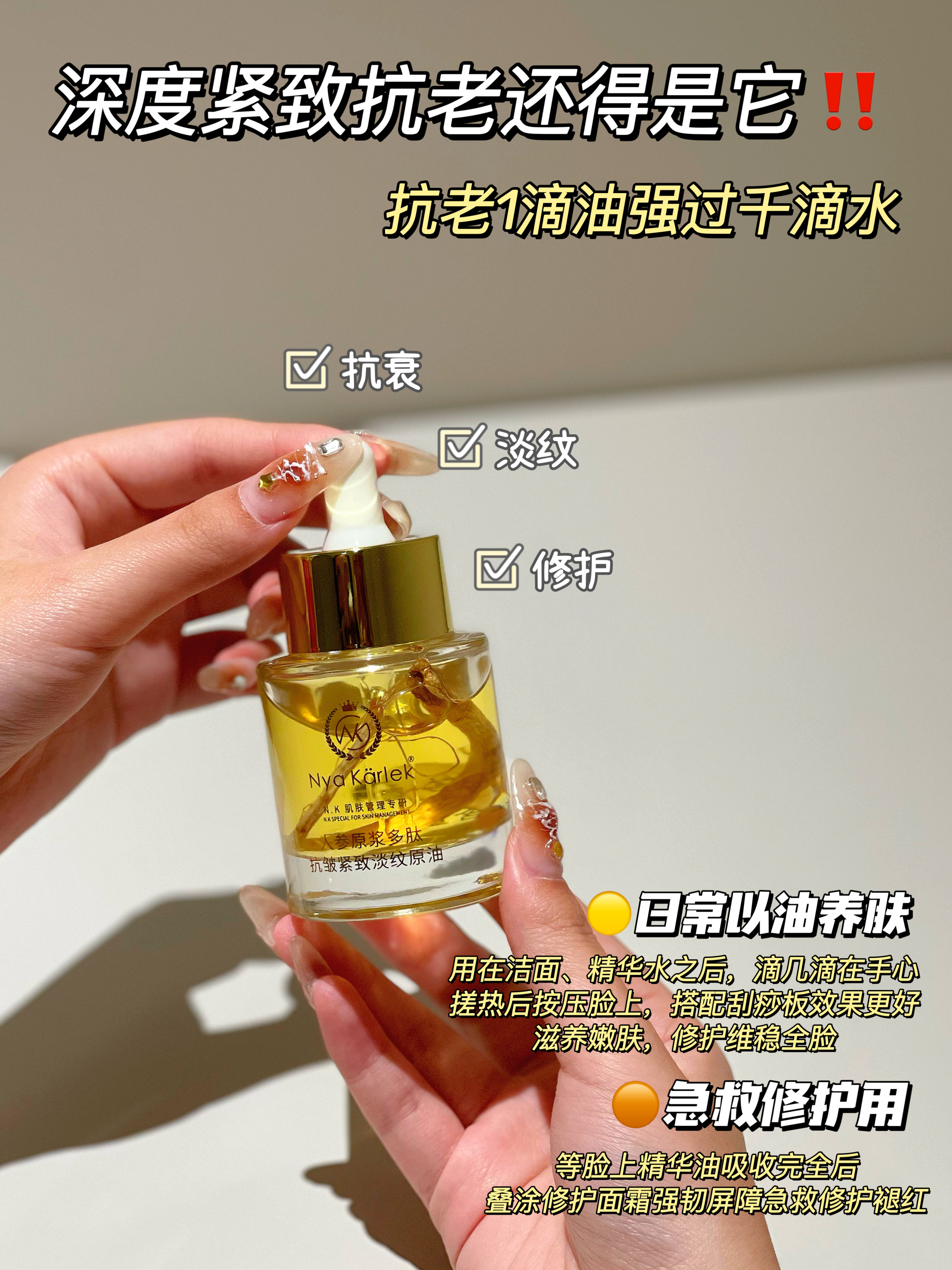 ✅NK人参精华原油采用「补油双修」成分配方