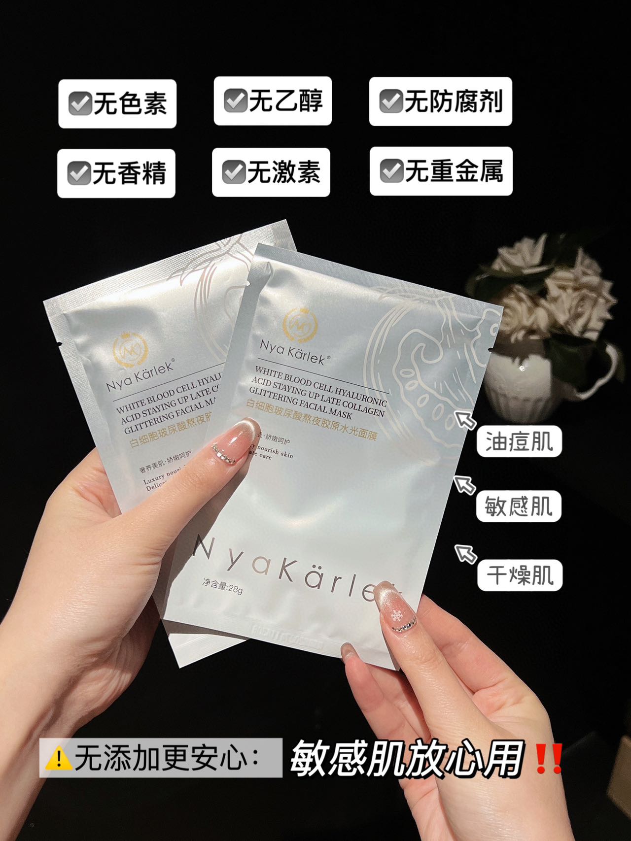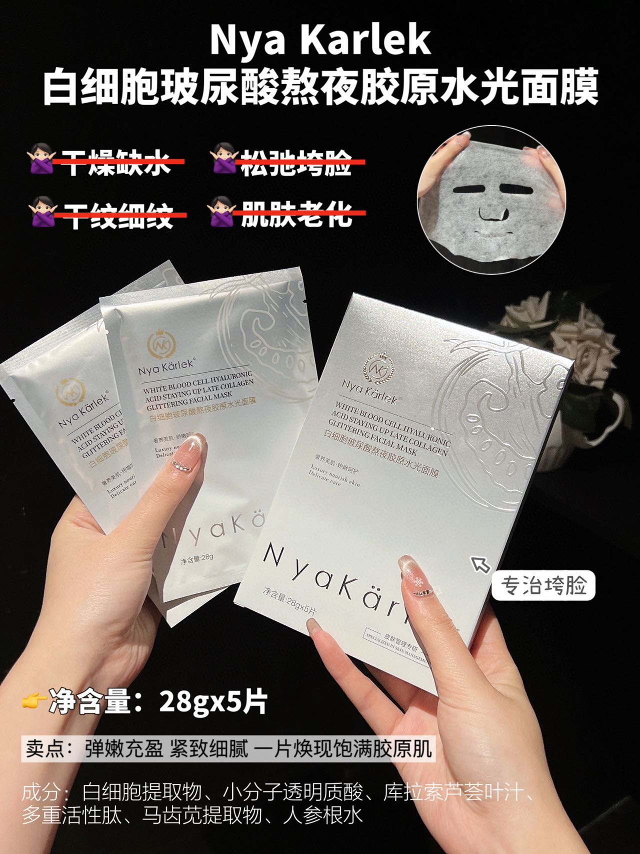 【✅Nya Karlek白细胞玻尿酸熬夜胶原水光面膜】