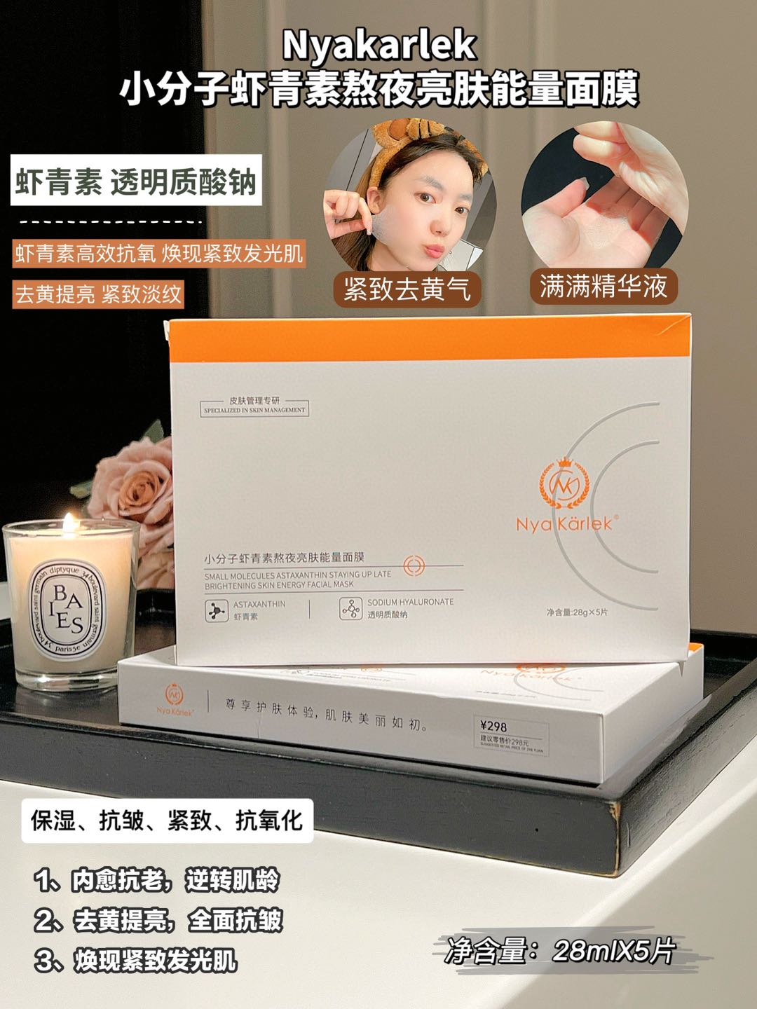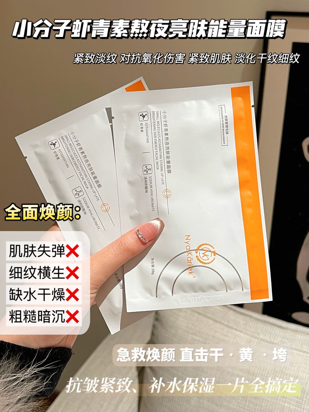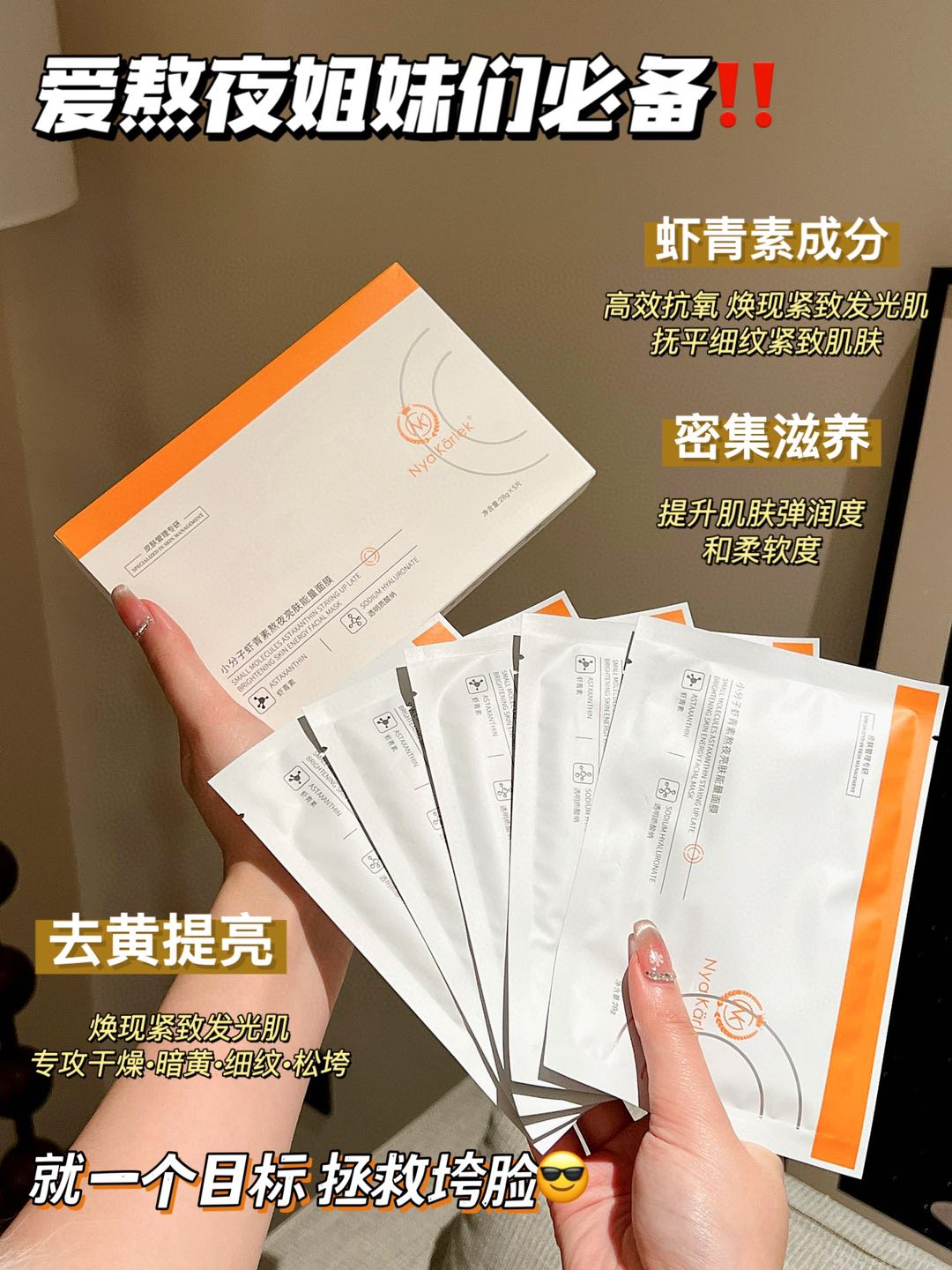 Nyakarlek·小分子虾青素熬夜亮肤能量面膜