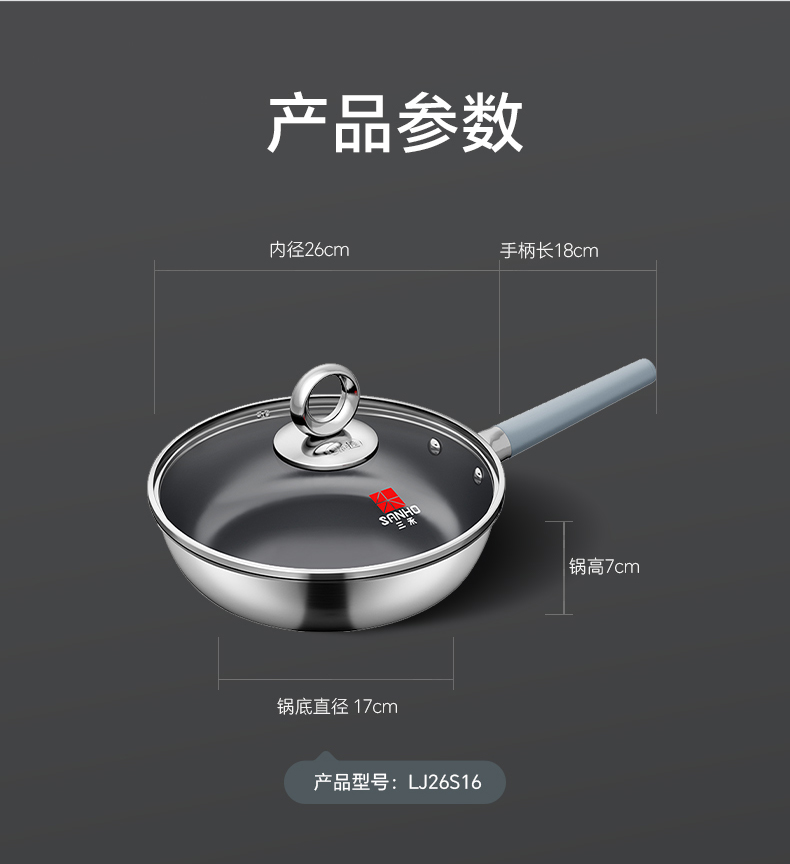 三禾0涂层有钛煎锅煎牛排煎鸡蛋煎锅电磁炉通用