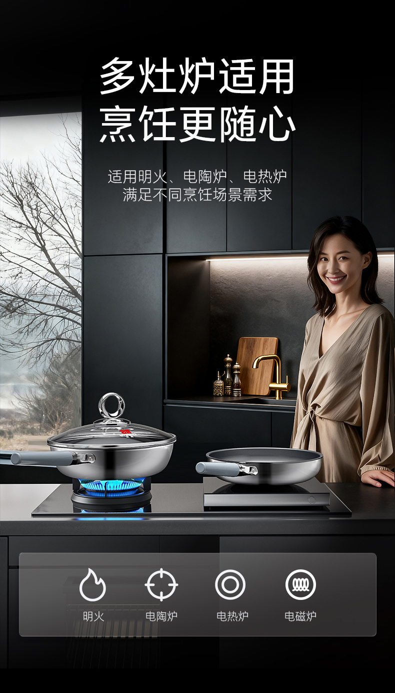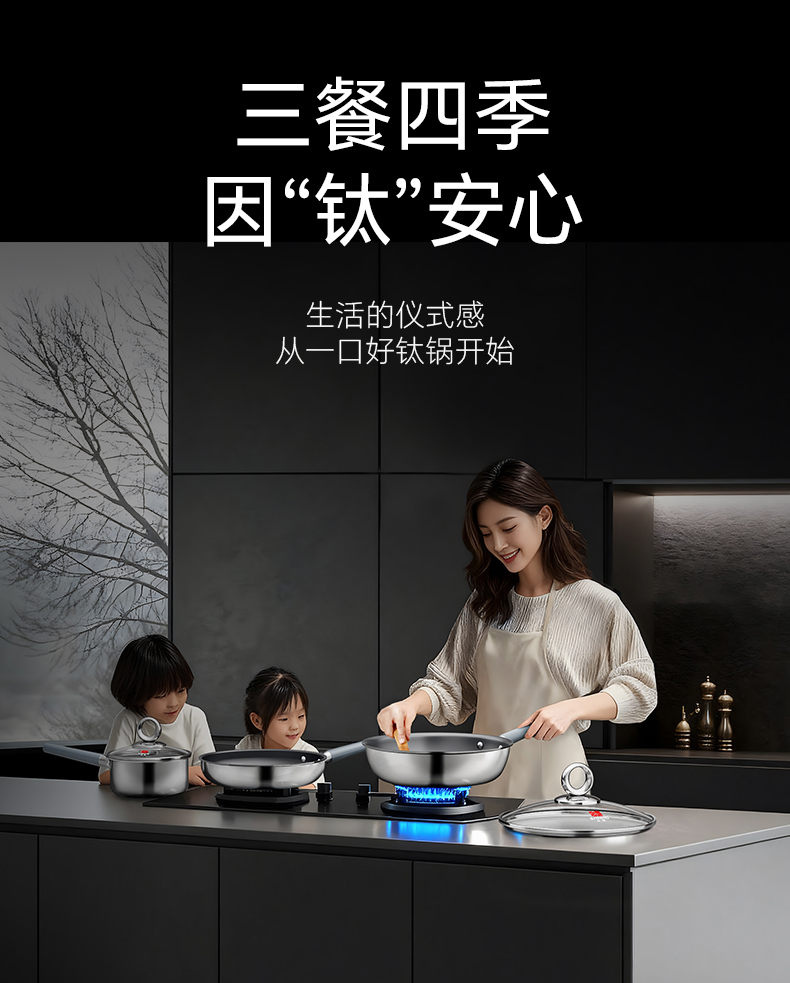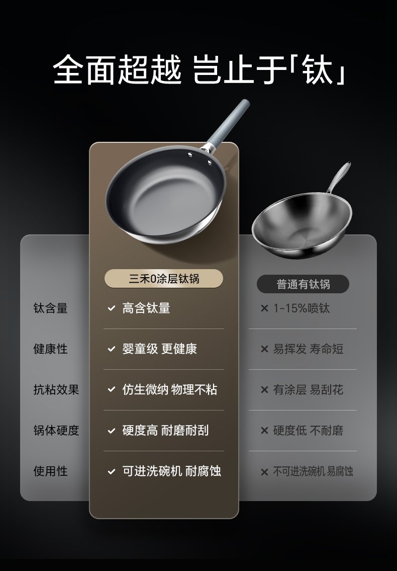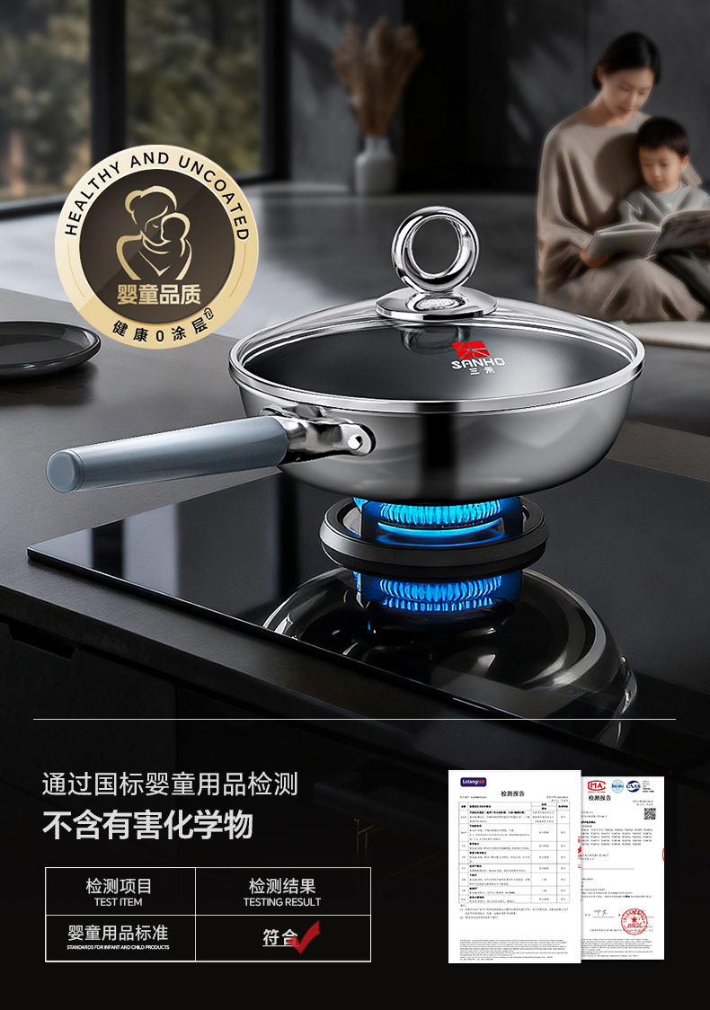 三禾有钛零涂层不粘奶锅宝宝辅食锅煎煮一体不粘锅