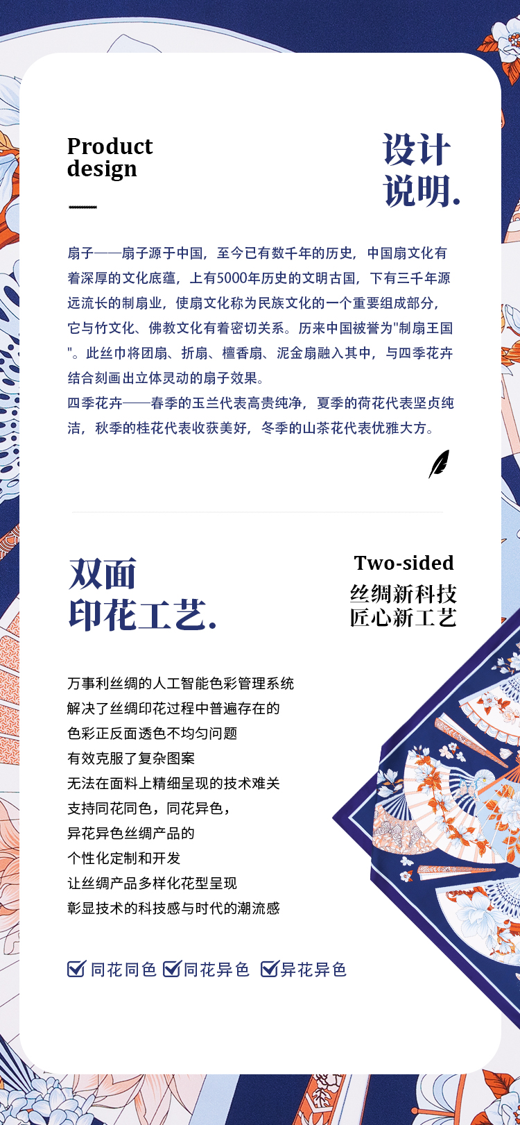 万事利“扇解人意”88厘米双面印花大方巾