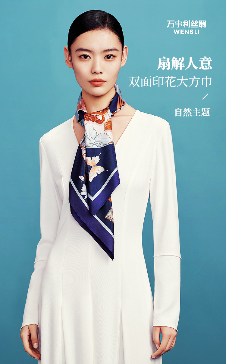 万事利“繁花笺”88厘米双面印花真丝大方巾