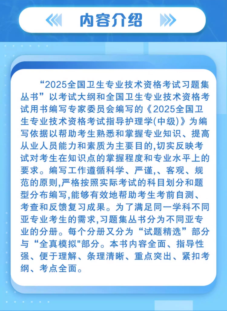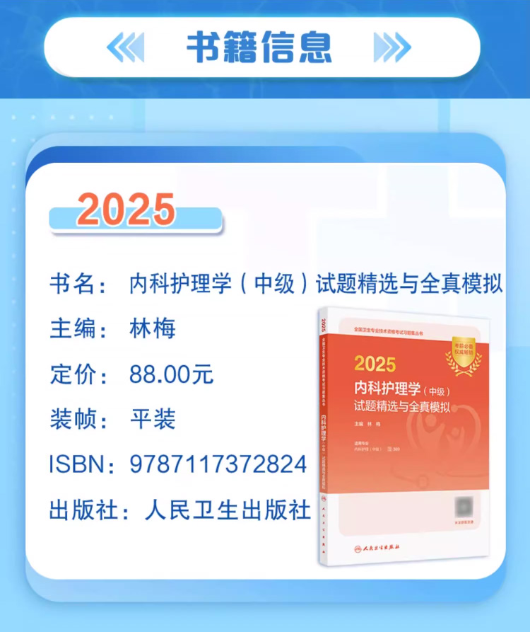 书名:2025内科护理学(中级)试题精选与全真模拟