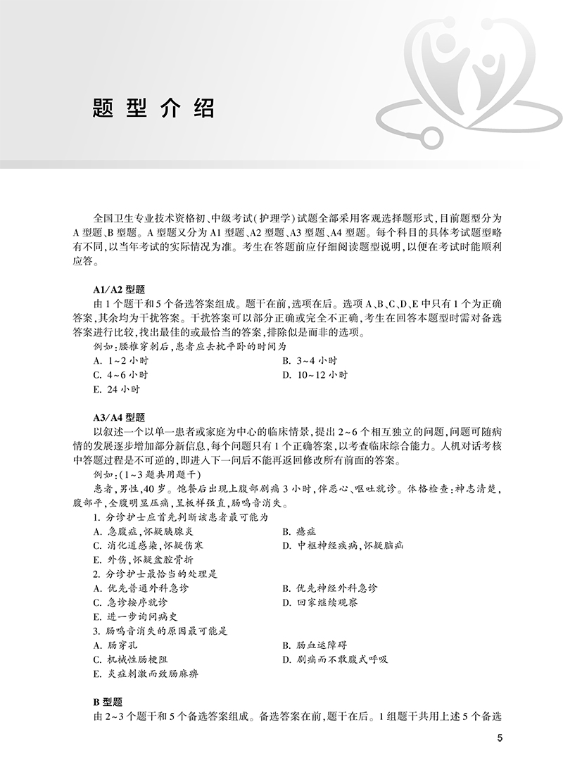 “2025全国卫生专业技术资格考试习题集丛书”以最新考试大纲和全国卫生专业技术资格考试专家委员会编写的《考试指导》为编写依据,以帮助考生熟悉和掌握专业知识、提高从业人员能力和素质为主要目的,切实反映考试对考生在知识点掌握程度和专业水平上的要求。编写工作遵循科学、严谨、客观、规范的原则,严格按照实际考试的科目划分和题型分布进行编写,能够有效地帮助考生进行考前自测、检查和反馈复习成果。根据主管护师考试特点,本系列图书按照护理学、内科护理学、外科护理学、儿科护理学、妇产科护理学5个考试专业划分,前半部分为试题精选,方便考生阅读考试指导相关章节内容后,举一反三,及时练习、复习;后半部分为全真模拟试题,共5套试卷,每套试卷包括4个科目,与真实考试内容相似,便于考生在考试前适应考试节奏,从容应考。