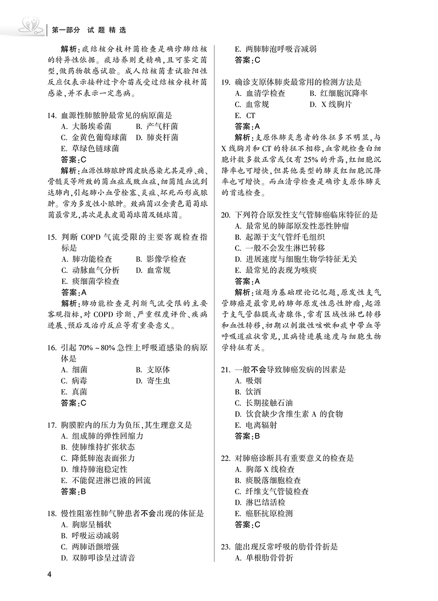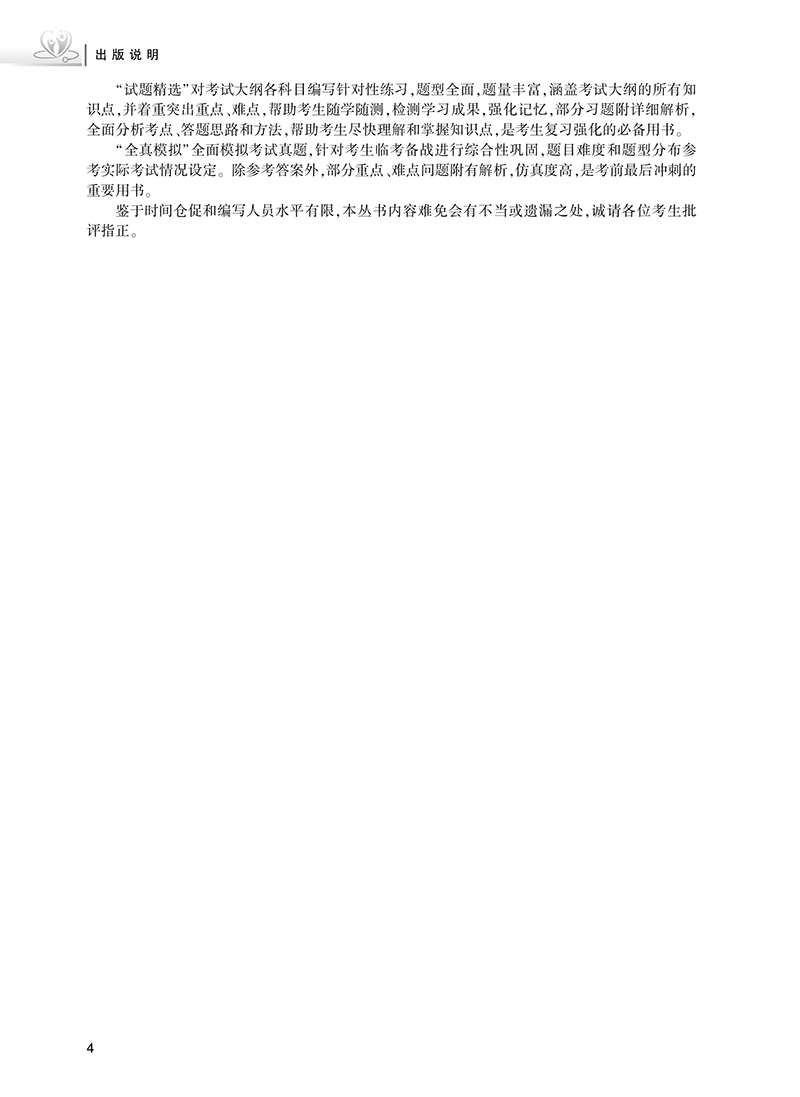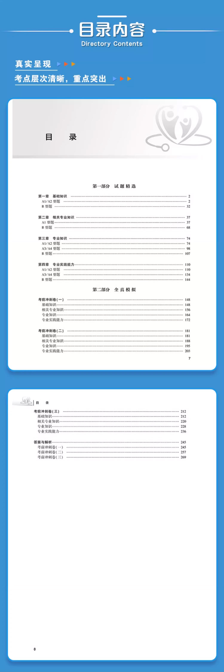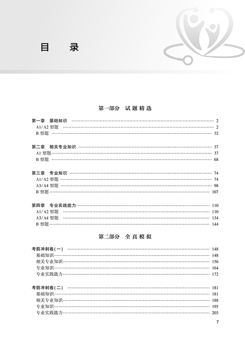 第一部分 试题精选 第一章 基础知识 / 2 A1/ A2 型题 / 2 B 型题 / 32 第二章 相关专业知识 / 37 A1 型题/ 37 B 型题 / 68 第三章 专业知识 / 74 A1/ A2 型题 / 74 A3/ A4 型题 / 98 B 型题/ 107 第四章 专业实践能力/ 110 A1/ A2 型题 / 110 A3/ A4 型题 / 134 B 型题/ 144 第二部分 全真模拟 考前冲刺卷(一) / 148 基础知识/ 148 相关专业知识/ 156 专业知识/ 164 专业实践能力/ 172 考前冲刺卷(二) / 181 基础知识/ 181 相关专业知识/ 188 专业知识/ 195 专业实践能力/ 203 考前冲刺卷(三) / 212 基础知识/ 212 相关专业知识/ 220 专业知识/ 228 专业实践能力/ 236 答案与解析/ 245 考前冲刺卷(一) / 245 考前冲刺卷(二) / 257 考前冲刺卷(三) / 269