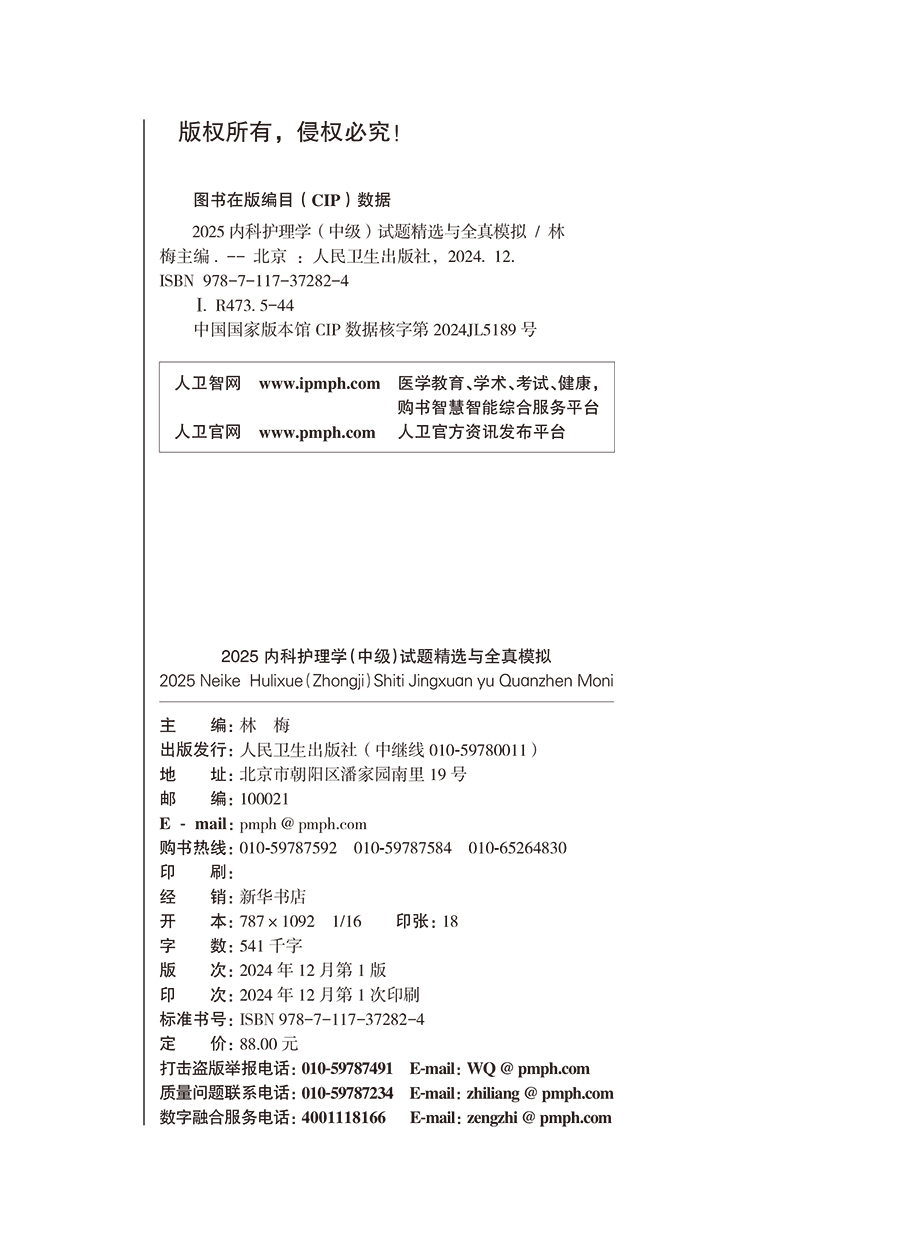 2025内科护理学 中级 试题精选与全真模拟 全国卫生专业技术资格考试习题集丛书 林梅主编 适用专业内科护理(中级) 9787117372824