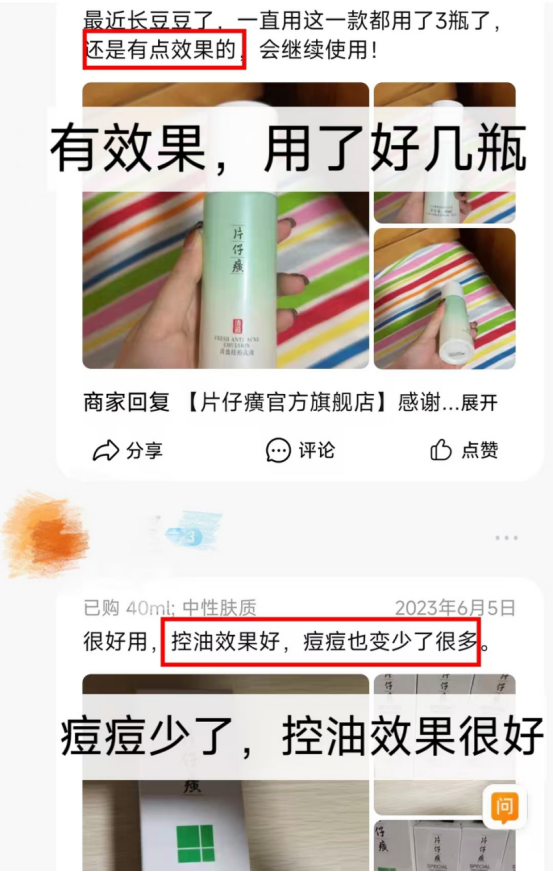 也是,片仔癀家的产品一直以口碑赢得消费者芳心,才有🐱旗舰店4w+的销量。 🌸随便截图一波,满是溢出屏幕的好用、控油祛痘有效果。