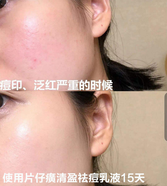 不祛痘可不给大家介绍! 咱们这瓶片仔癀牌清盈祛痘乳液可是有实实在在的祛痘效果。 🉑在化妆品备案网上查询的到,经过人体实验的确实有祛痘效果。 😎用的时间越长,痘痘改善效果越明显! 14天白头粉刺-36.22%❗ 25天白头粉刺-53.60%❗ 56天白头粉刺-64.04%❗ 我也是个爱出油的肤质,熬完夜就长痘,所以每次我都赶紧用上它。 使用第一次时候,就被它清痘的效果所折服。这使用前后对比,简直不要太让人惊喜了!