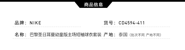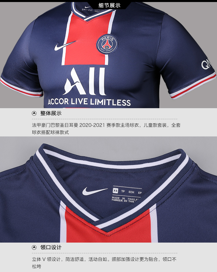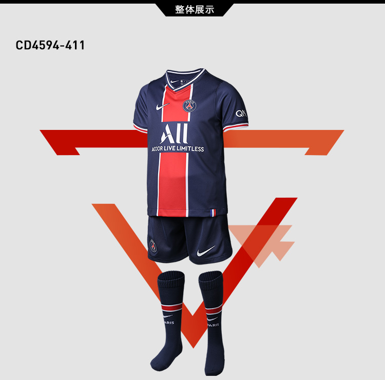 小李子正品NIKE耐克PSG20-21赛季巴黎儿童球衣套装CD4594-411