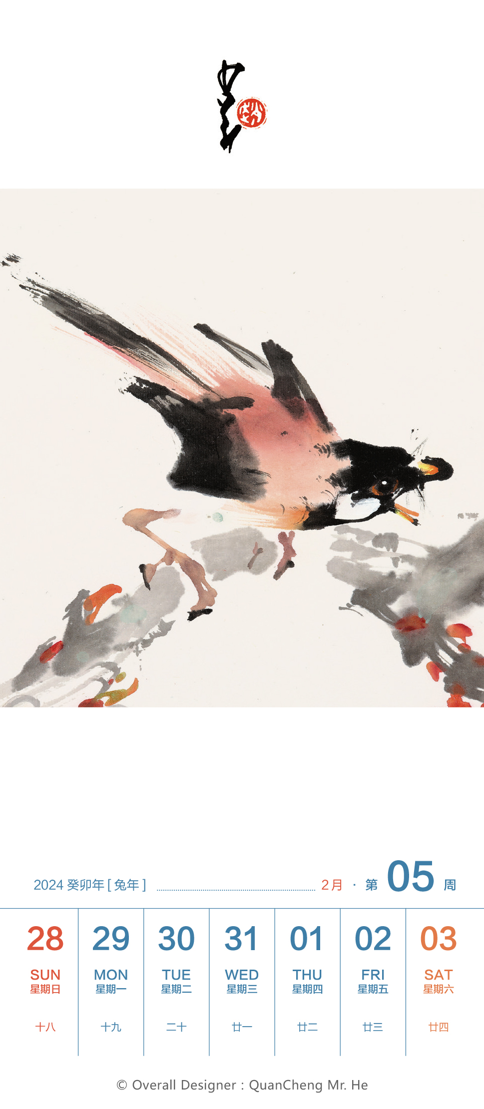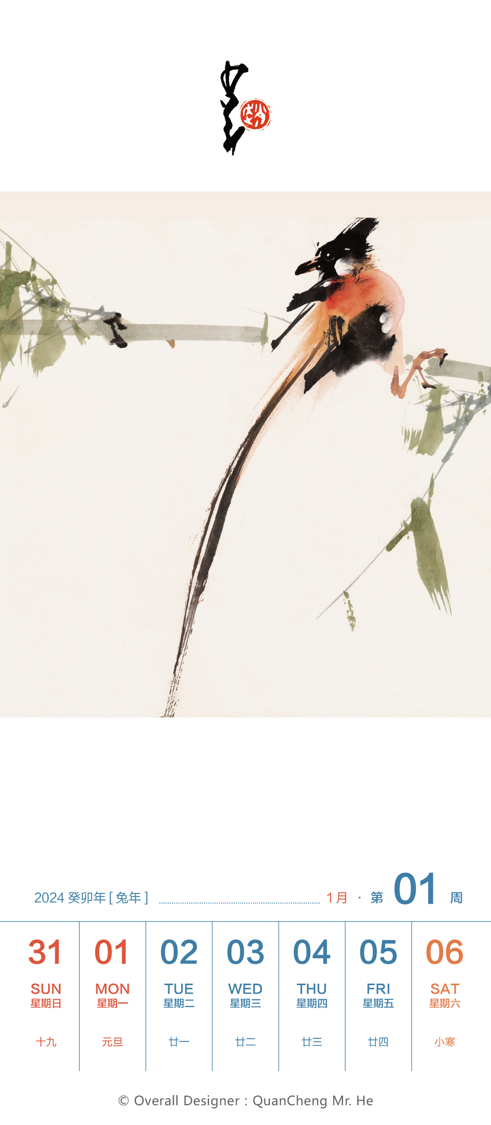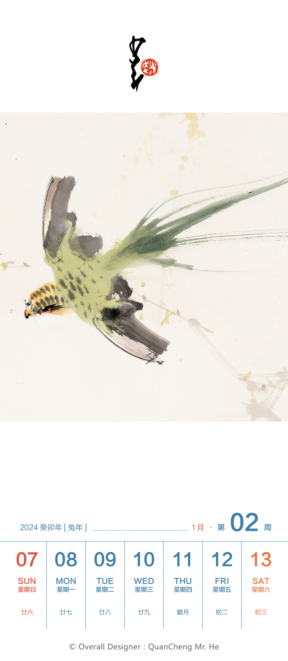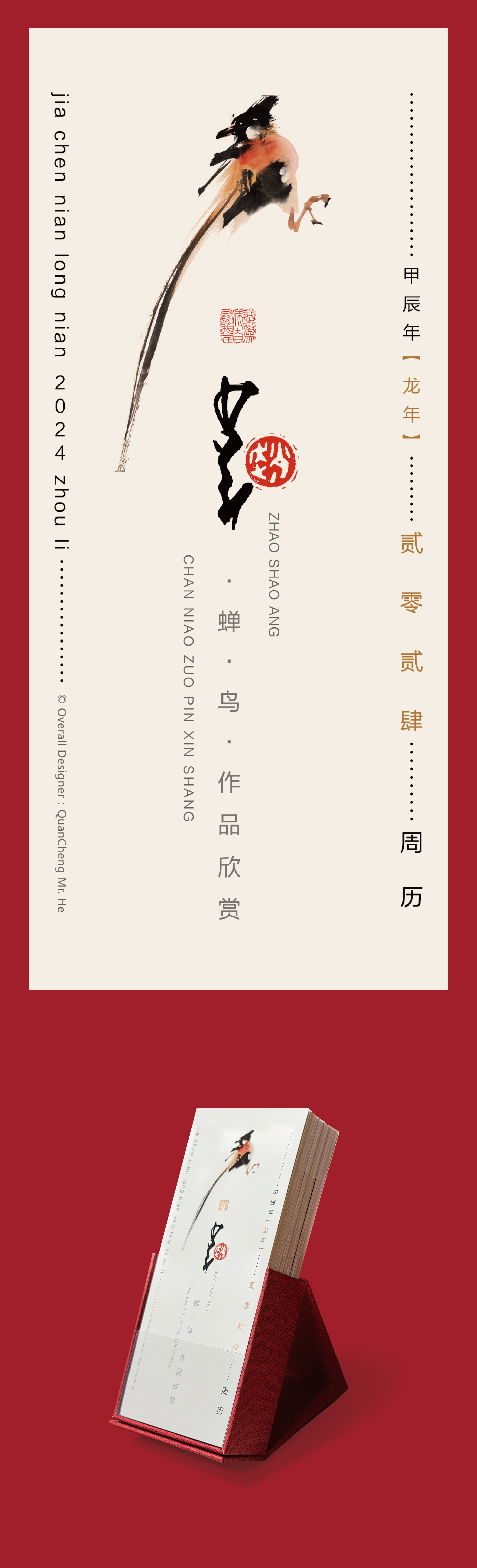 赵少昂2024花鸟台历(周历)规格10*4*20CM60张精美印刷卡纸含作品画面+作者生平介绍+年历2张附送[送礼自用]