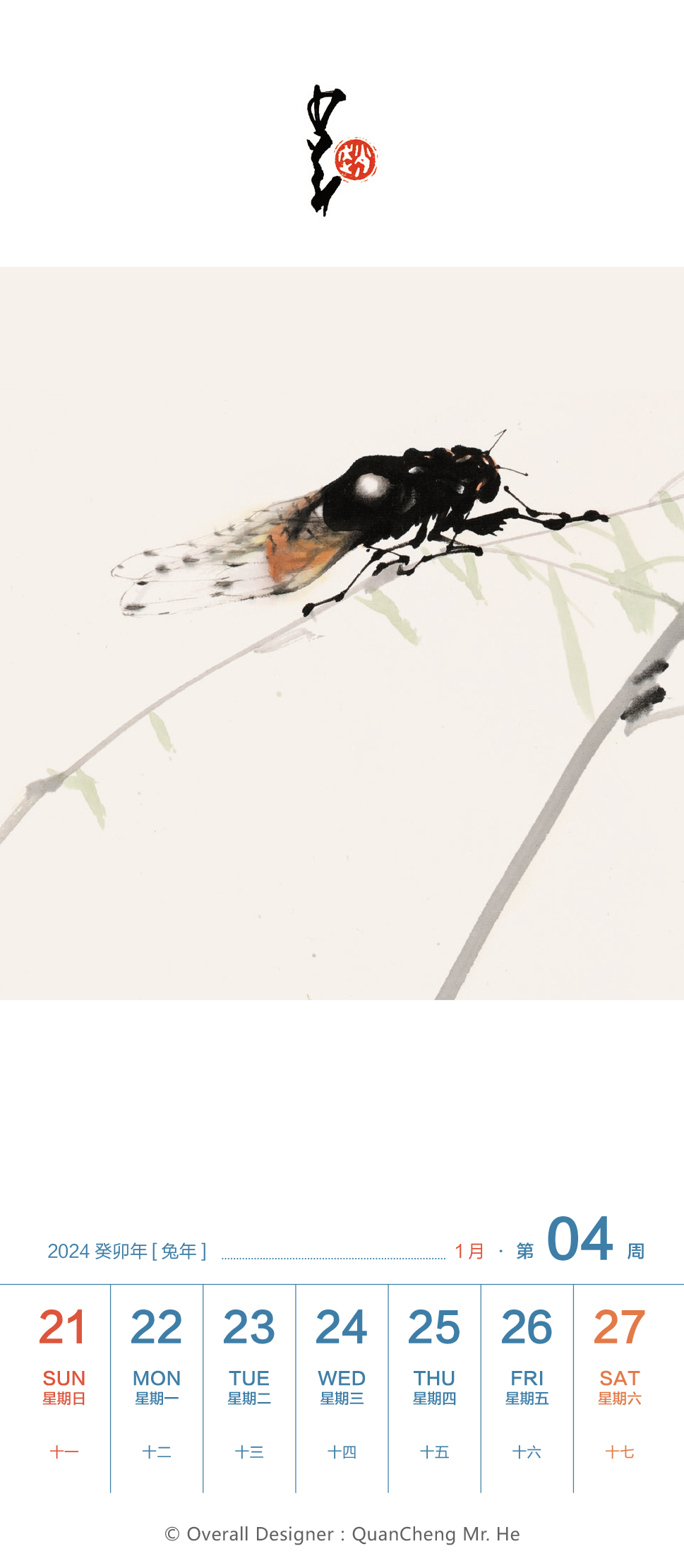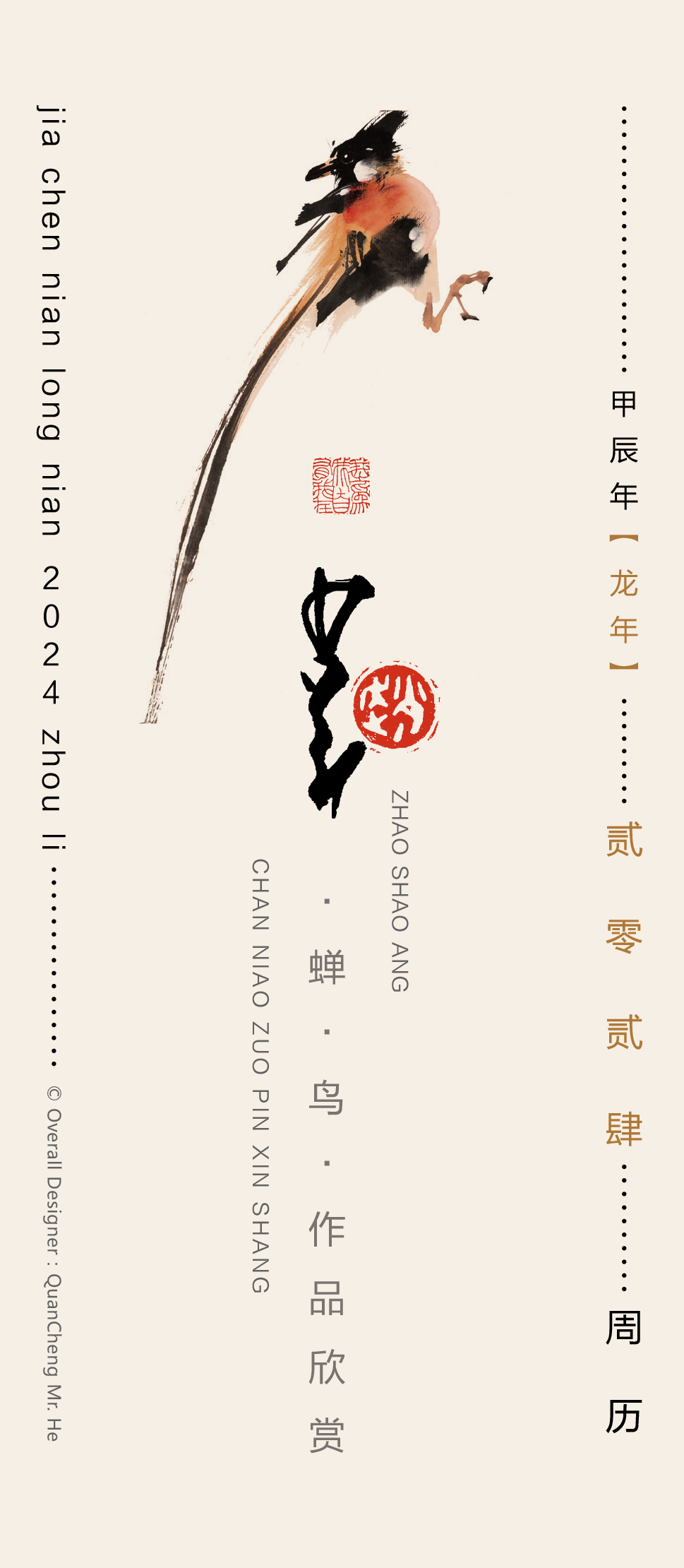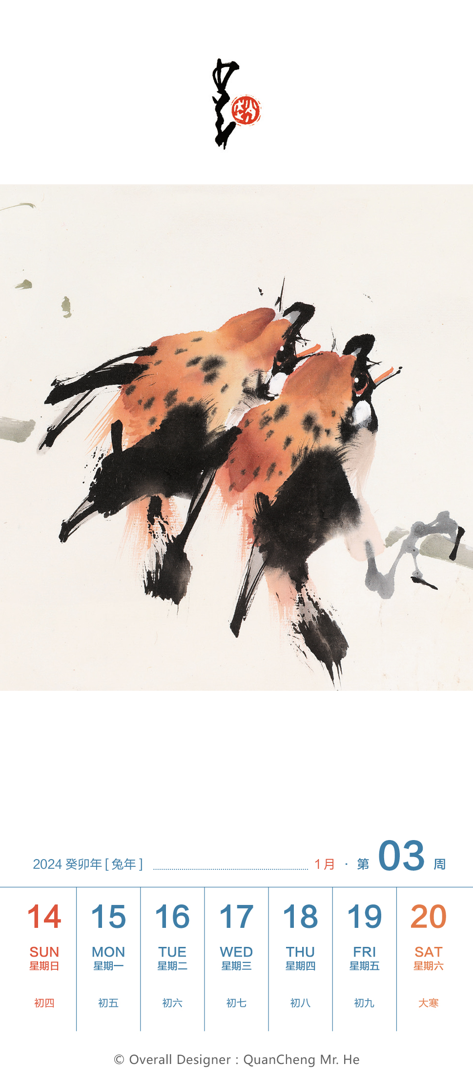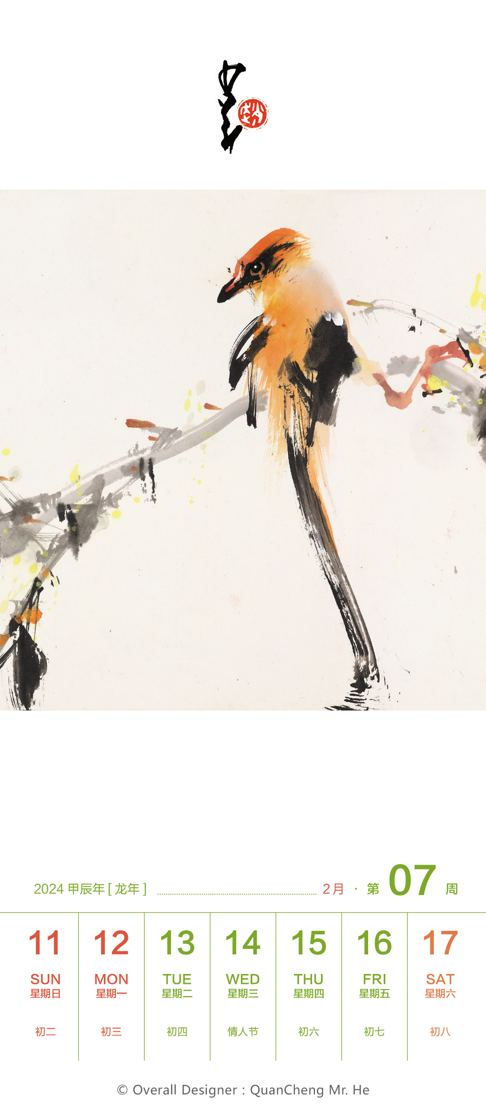 赵少昂2024花鸟台历(周历)规格10*4*20CM60张精美印刷卡纸含作品画面+作者生平介绍+年历2张附送[送礼自用]