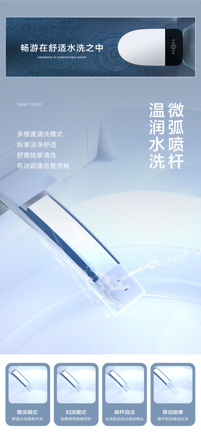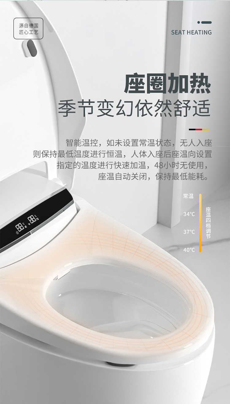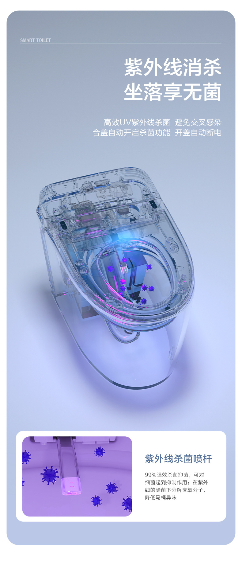 德国轻智能马桶虹吸坐便器无水压限制一体式自动杀菌 自动翻盖 紫外线杀菌