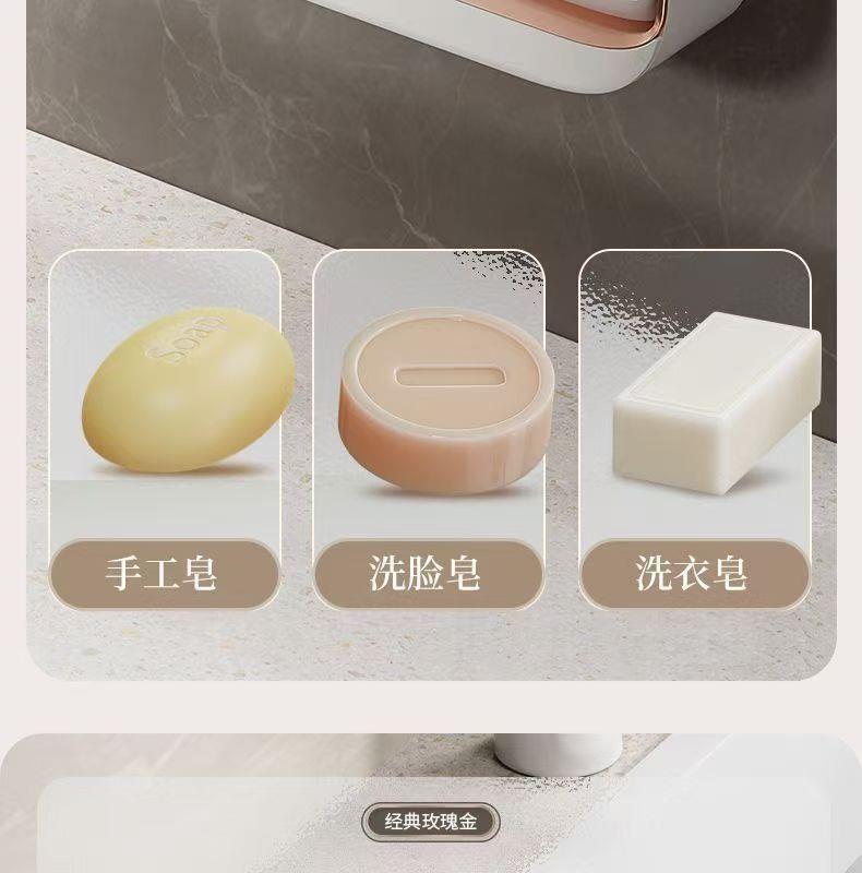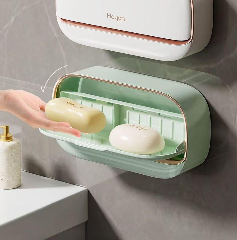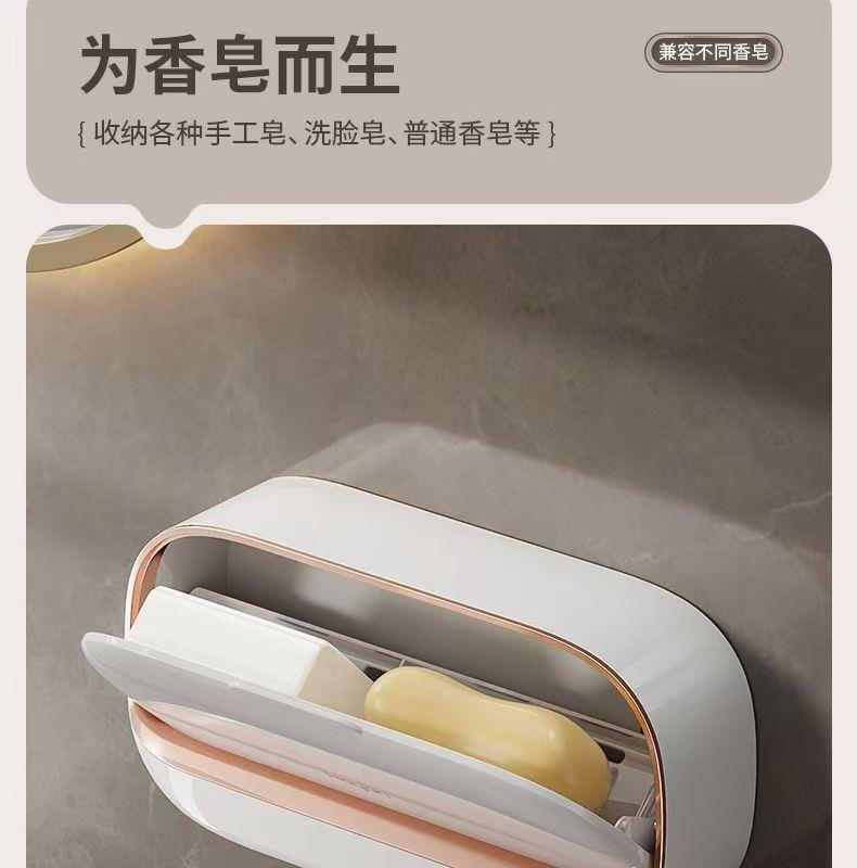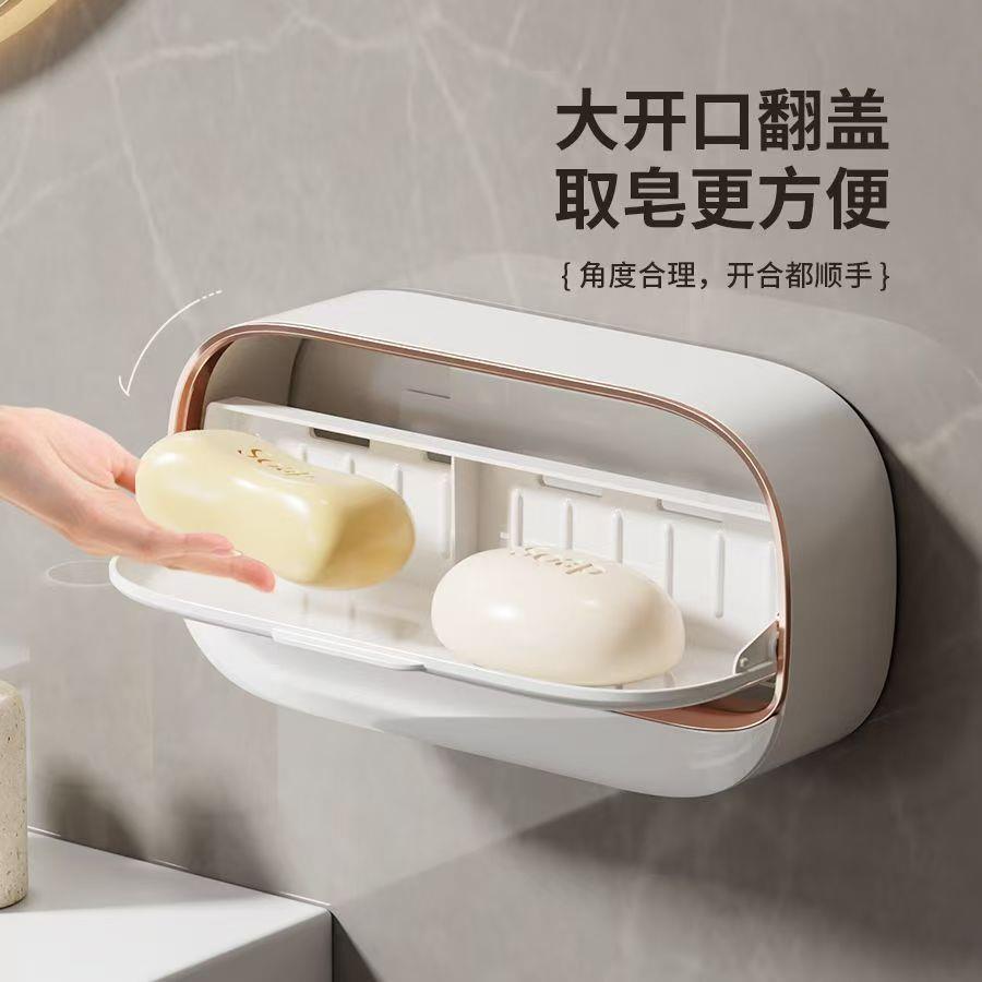 肥皂盒壁挂带盖香皂盒贴墙沥水肥皂盒浴室家用香皂架双格肥皂架