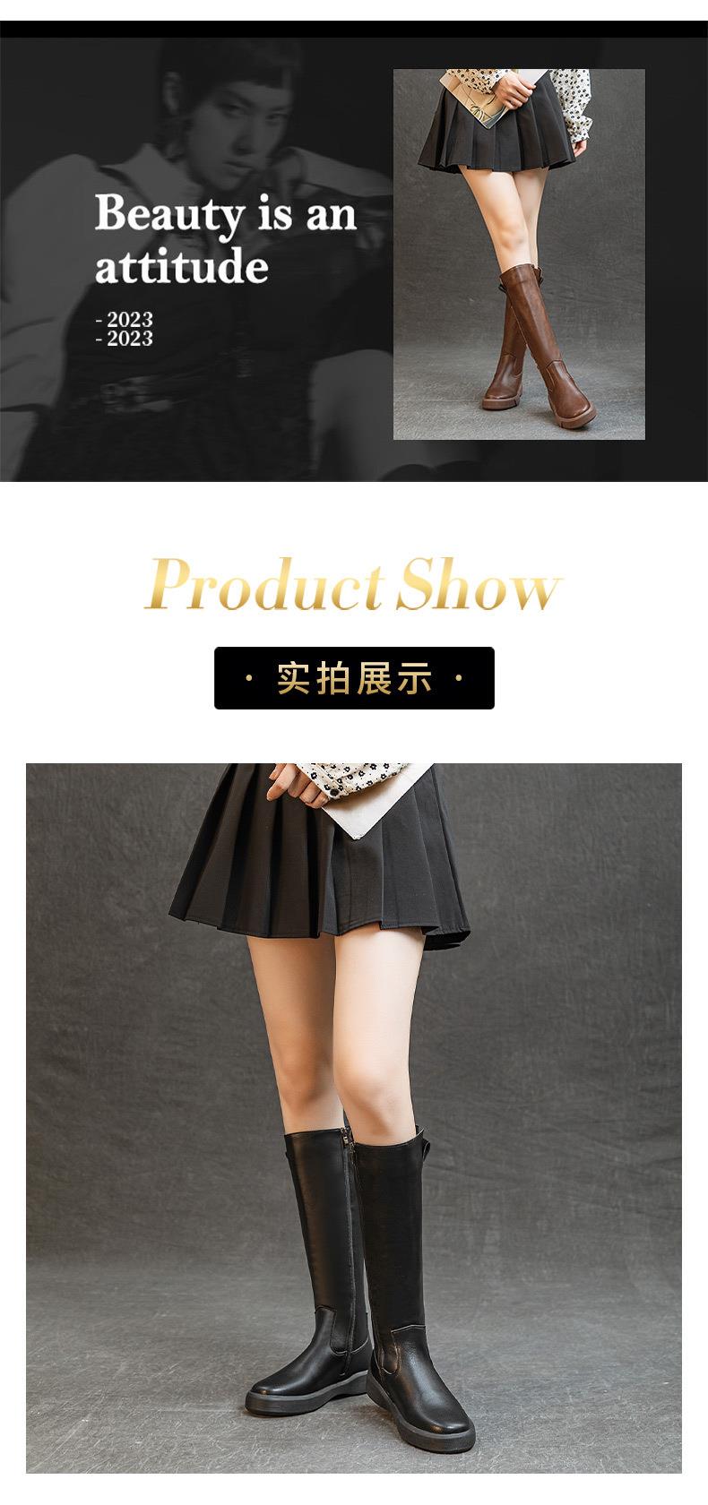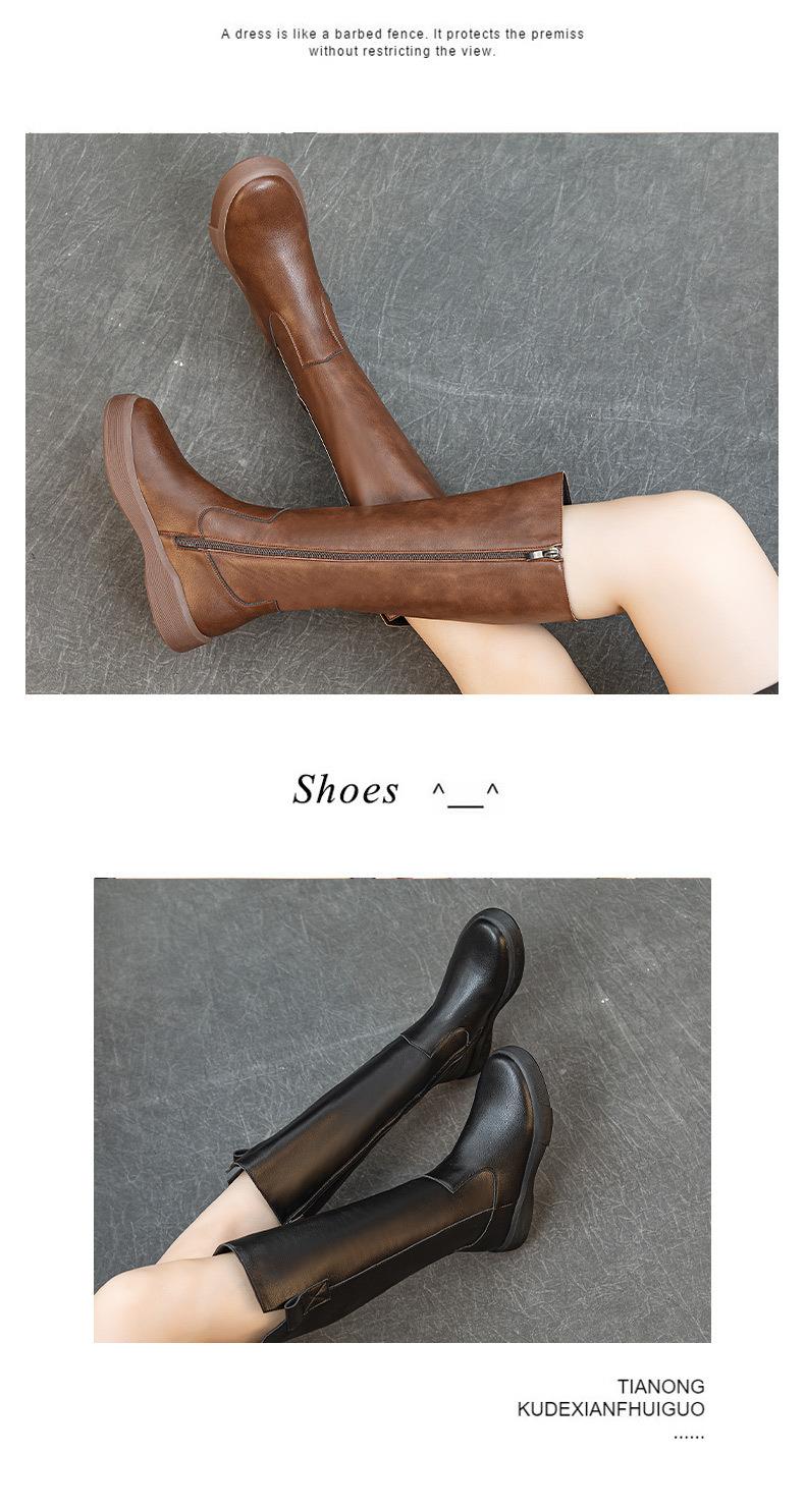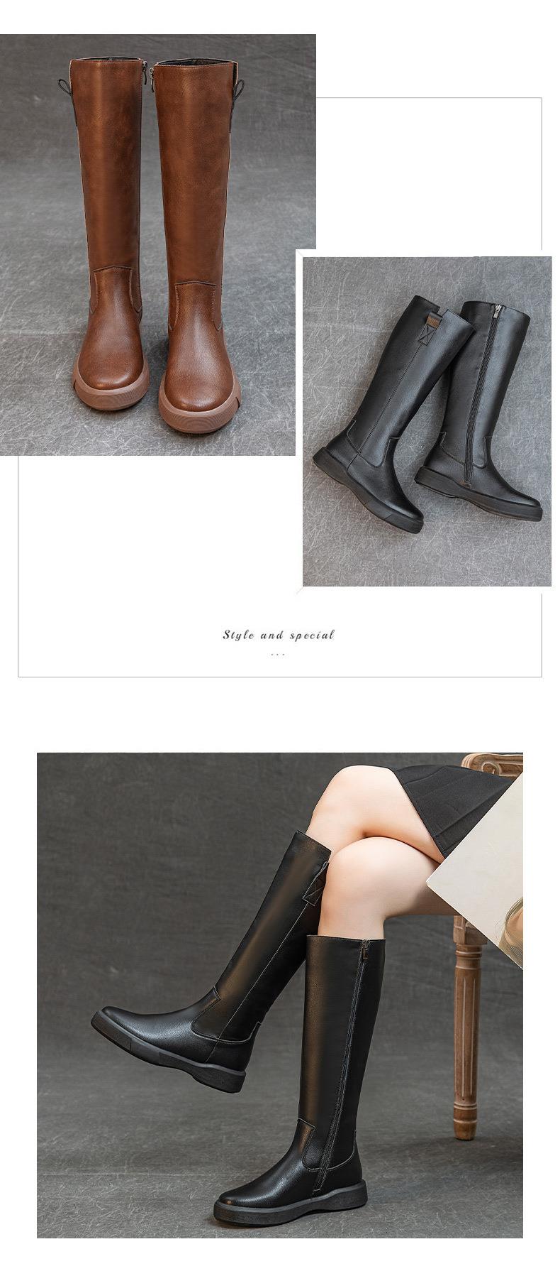 复古真皮马丁靴子女不过膝显瘦骑士靴厚底加绒秋冬长靴百搭高筒靴