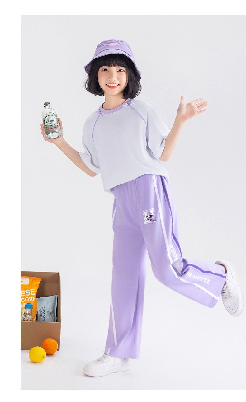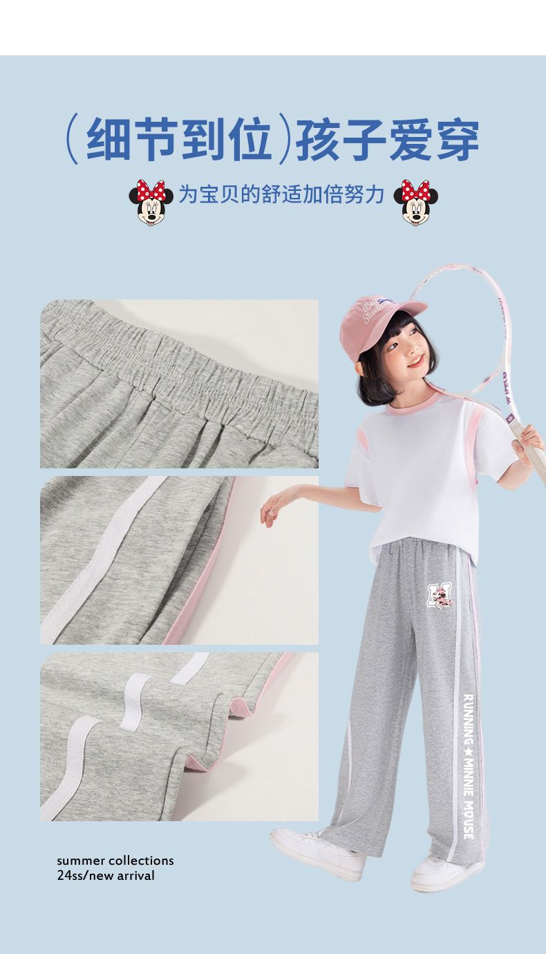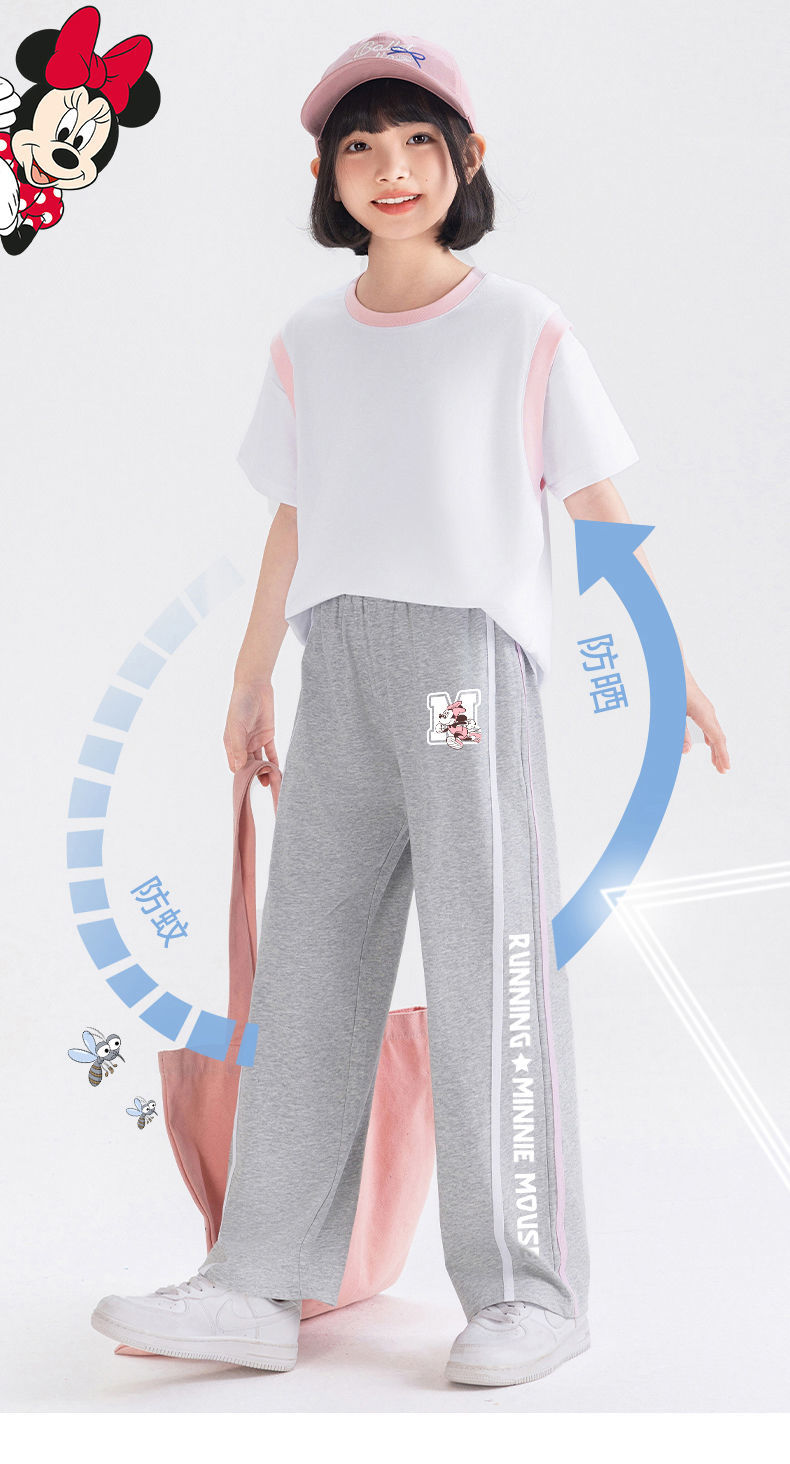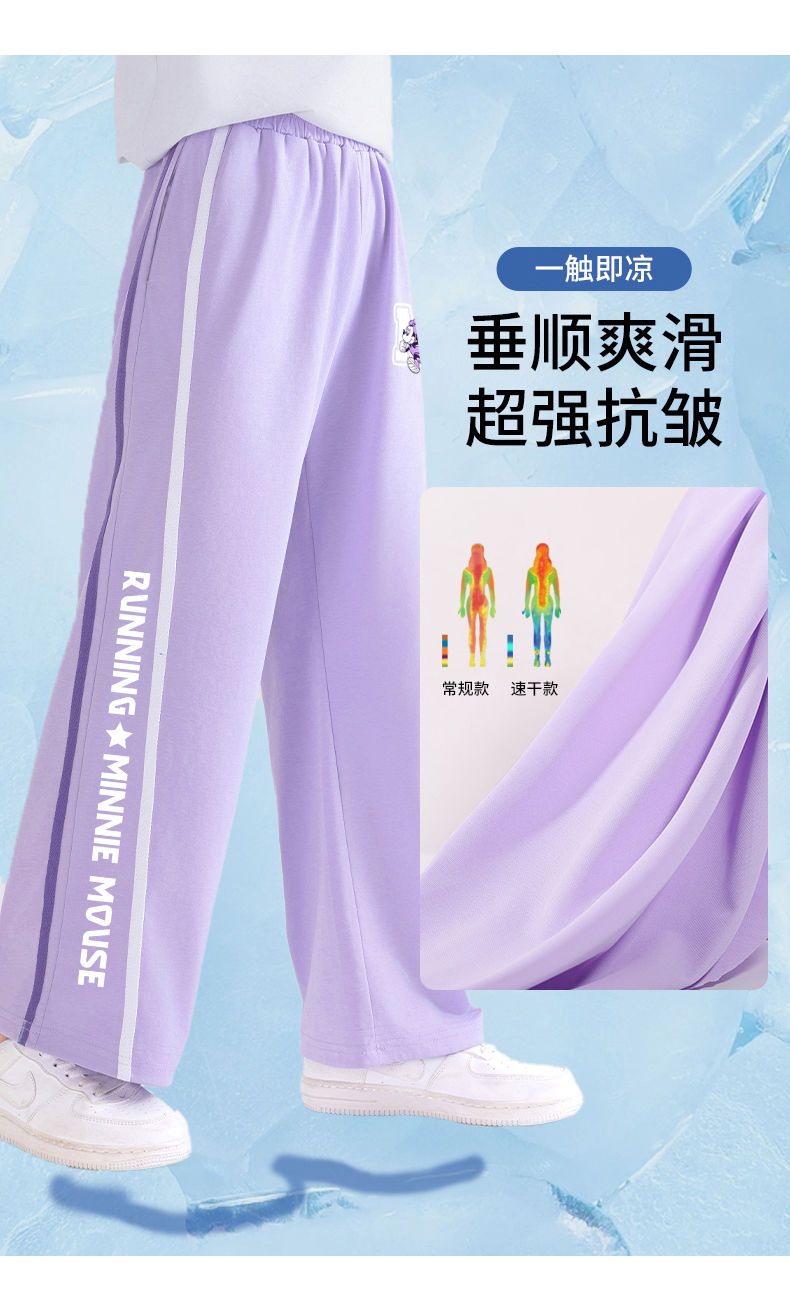 H08迪士尼女童阔腿裤夏季冰丝长裤2025新款儿童防蚊裤女大童裤子