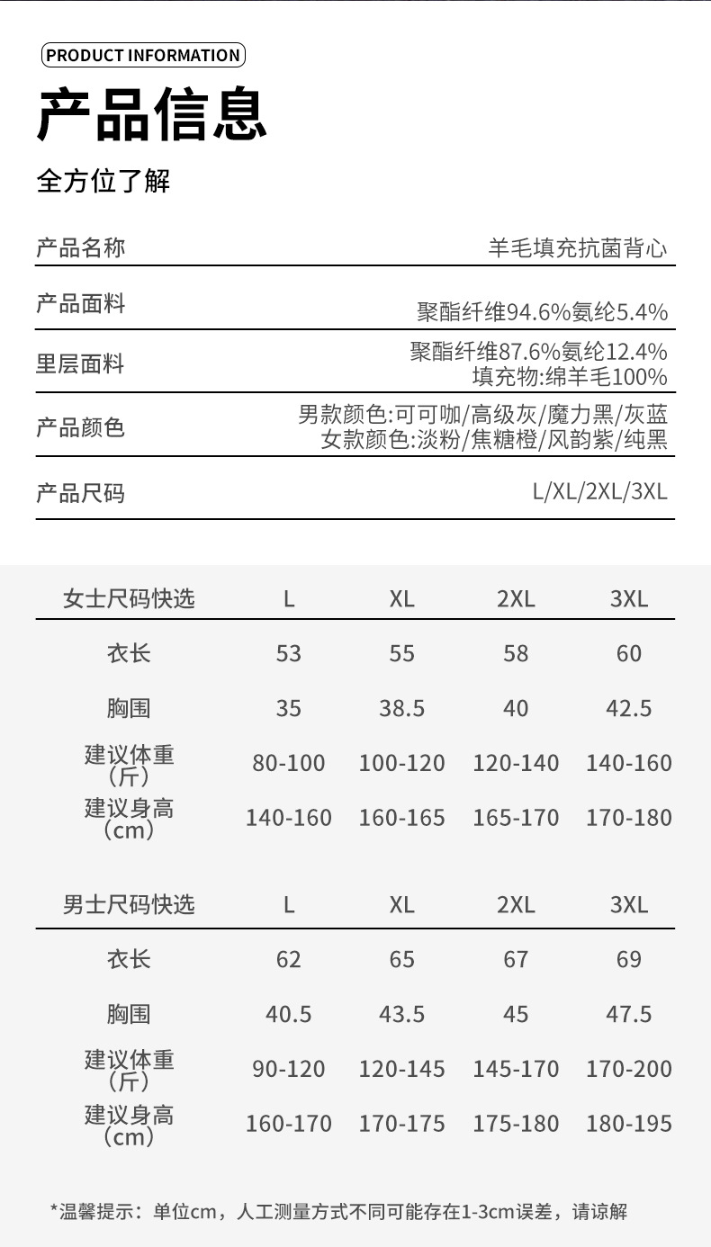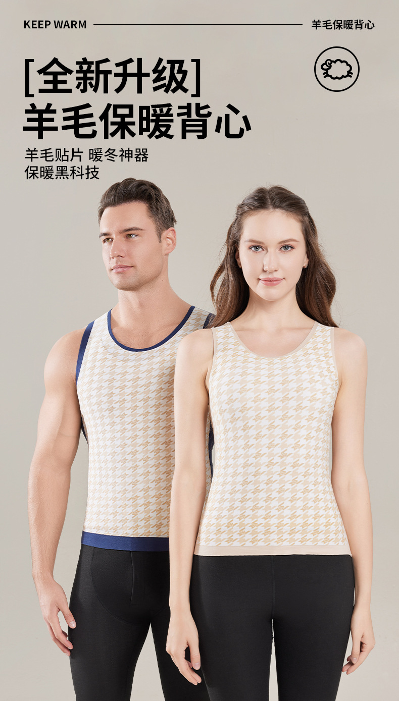 7A抗菌背心羊毛贴片羊毛保暖背心男女加厚无痕 保暖内衣打底衫