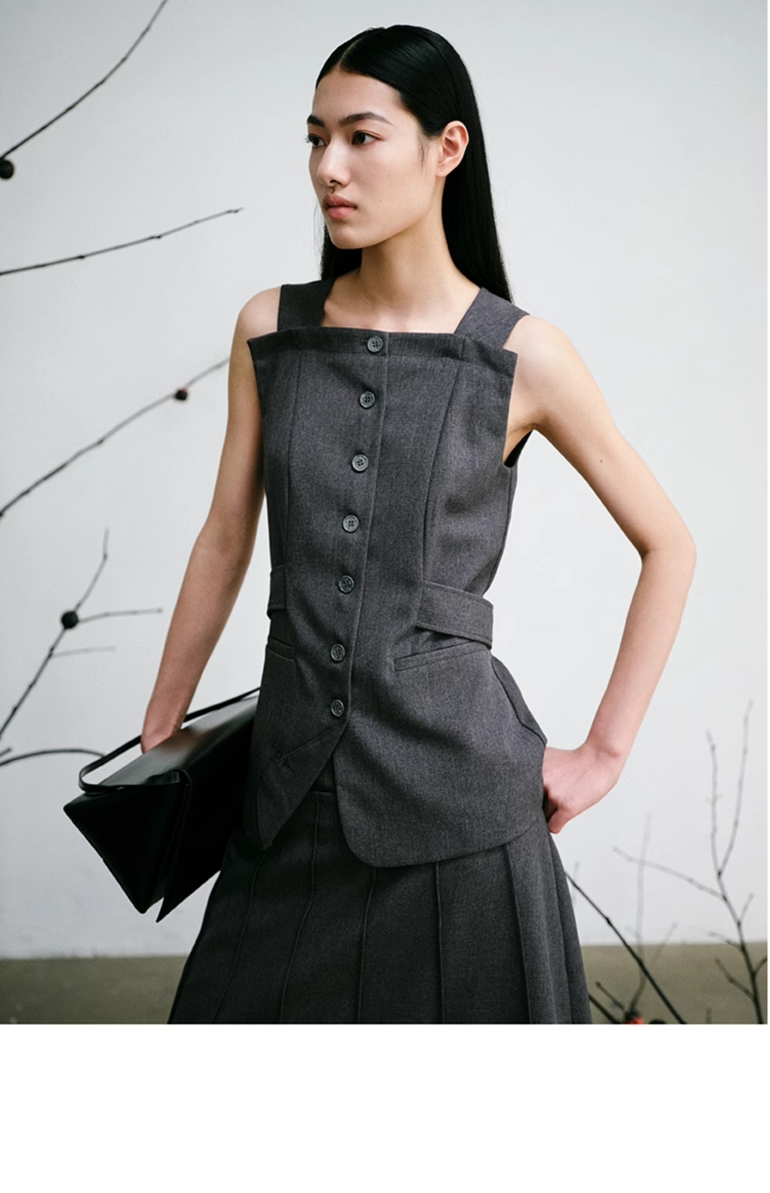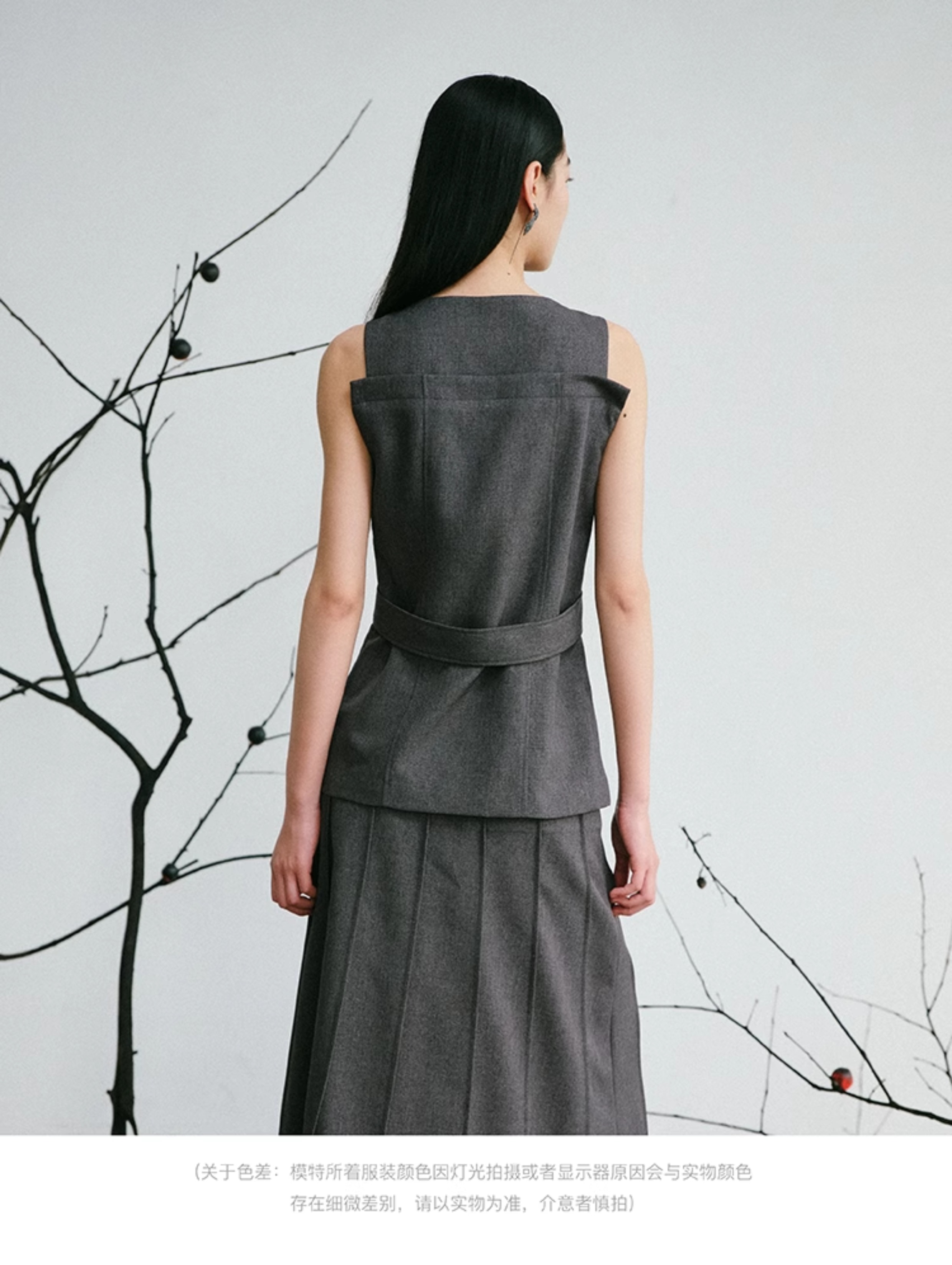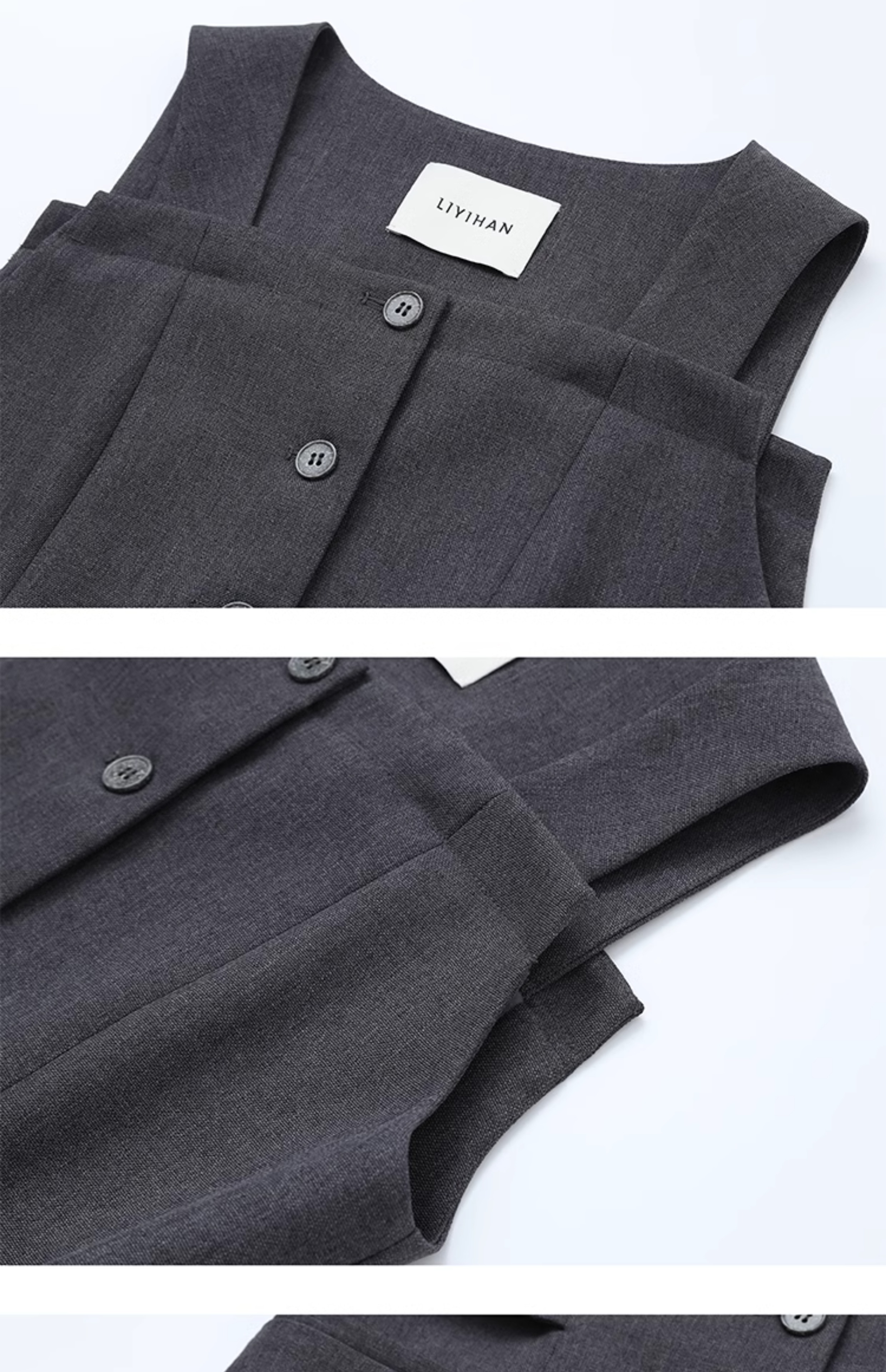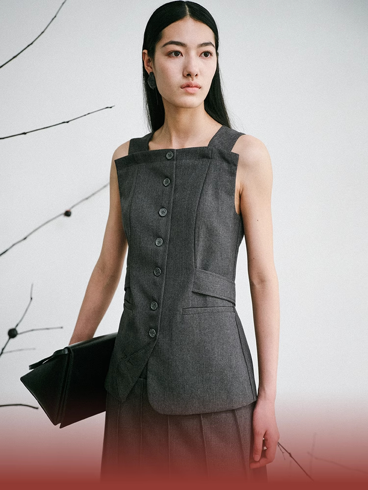 LIYIHAN序章 轻盈质感抗皱纯棉斜肩衬衫料上衣无袖衬衫