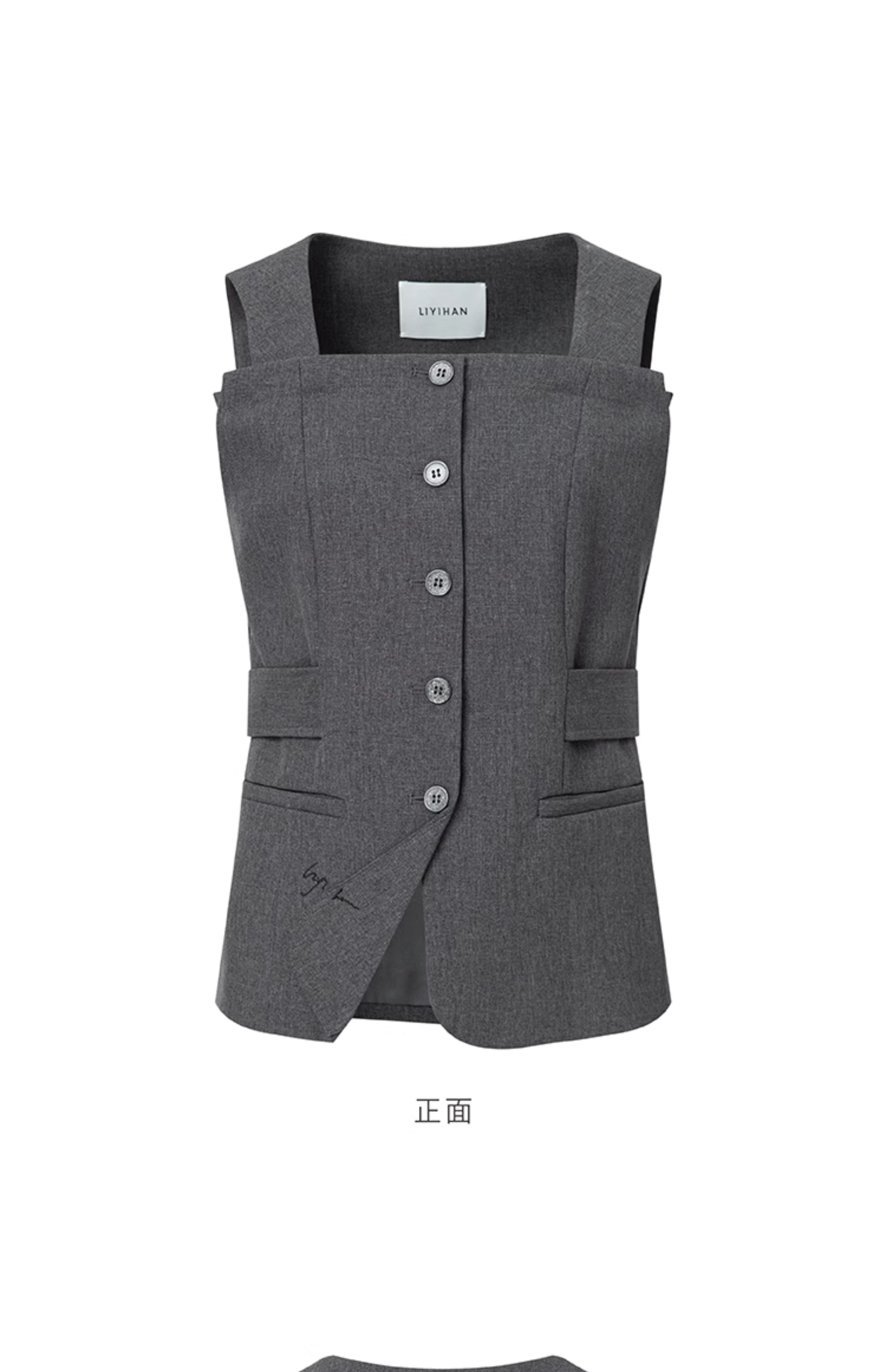 LIYIHAN 一字肩中国风折角收腰上衣气质女收腰显瘦OL通勤马夹内搭