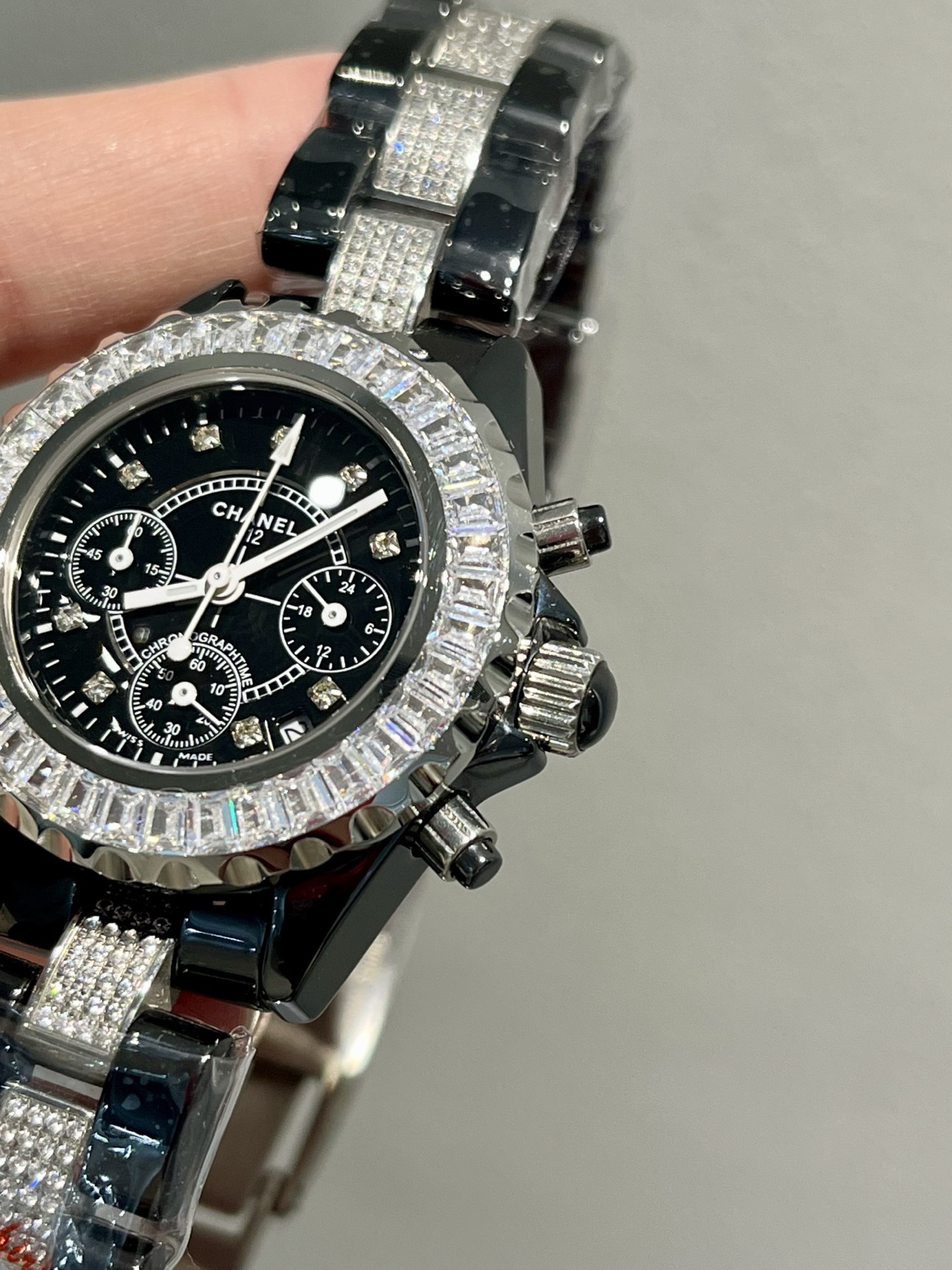 ➕满钻🌟CHANEL·香奈儿J12·【六针瑞士纯进口机芯石英】33mm➕纯净T方石➕表带镶钻款‼️奢华代表 超闪水钻 手工镶嵌工艺,正品原版开模,打磨精良 做工精细,乃精品中的精品❕❕❕fully paved with diamonds 🌟 CHANEL J12 [Six pin Swiss pure imported quartz movement] 33mm ➕ Pure T-square stone ➕ Diamond studded watch strap ‼️ The luxurious representative of ultra sparkling rhinestone handcrafted inlay technology, authentic original mold, finely polished and crafted, is a masterpiece among exquisite products ❕❕❕