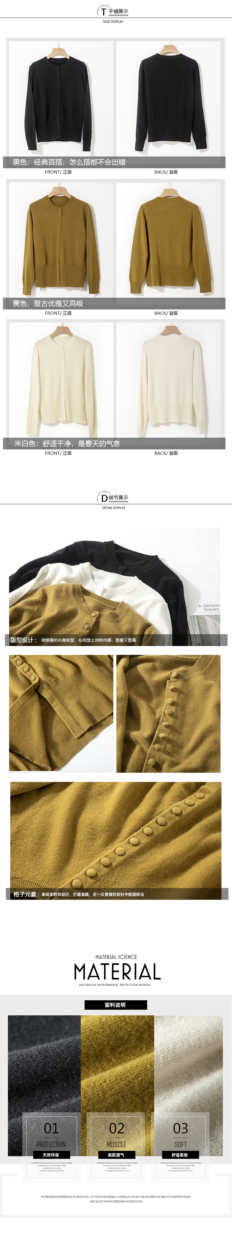 彩扣圆领开衫