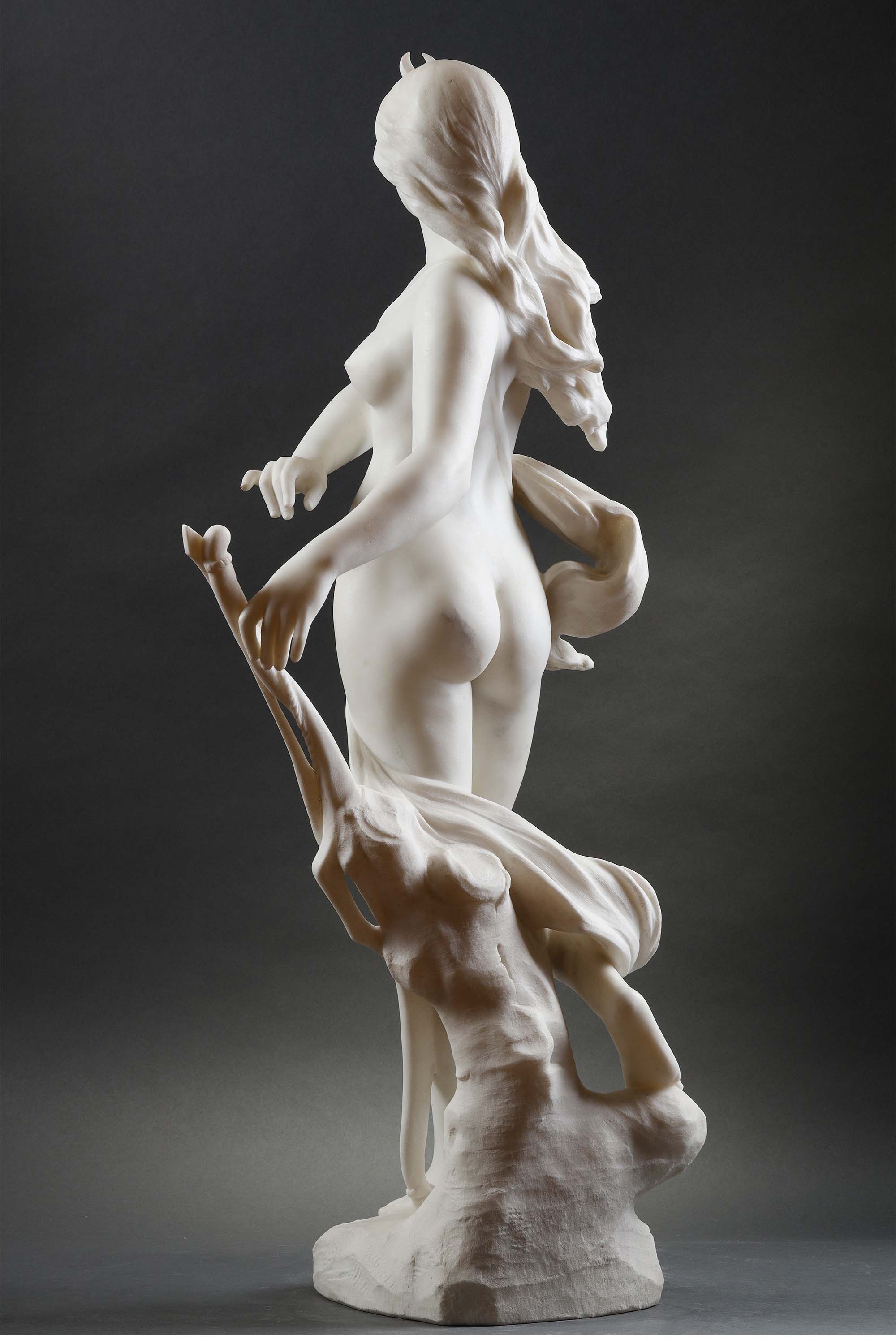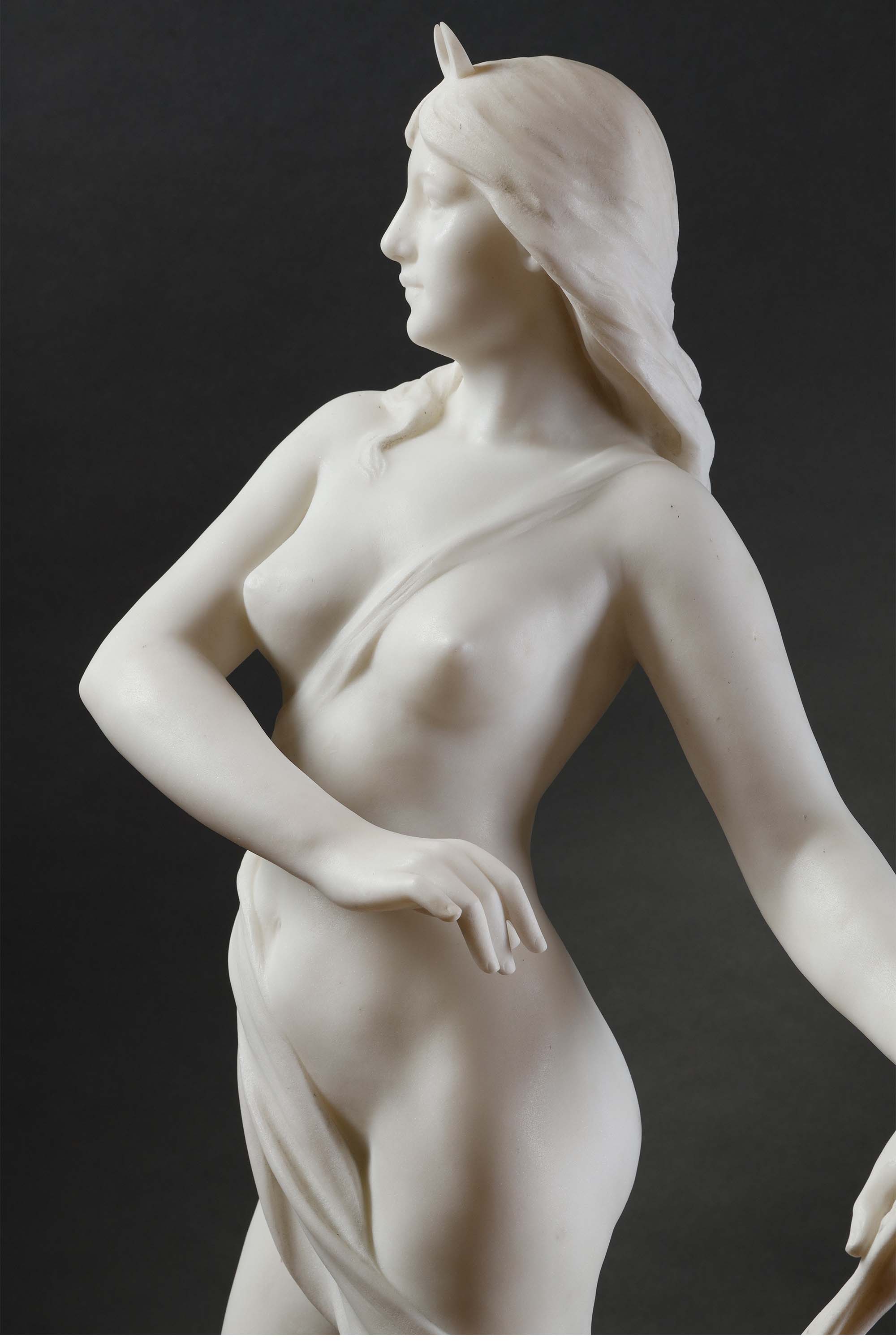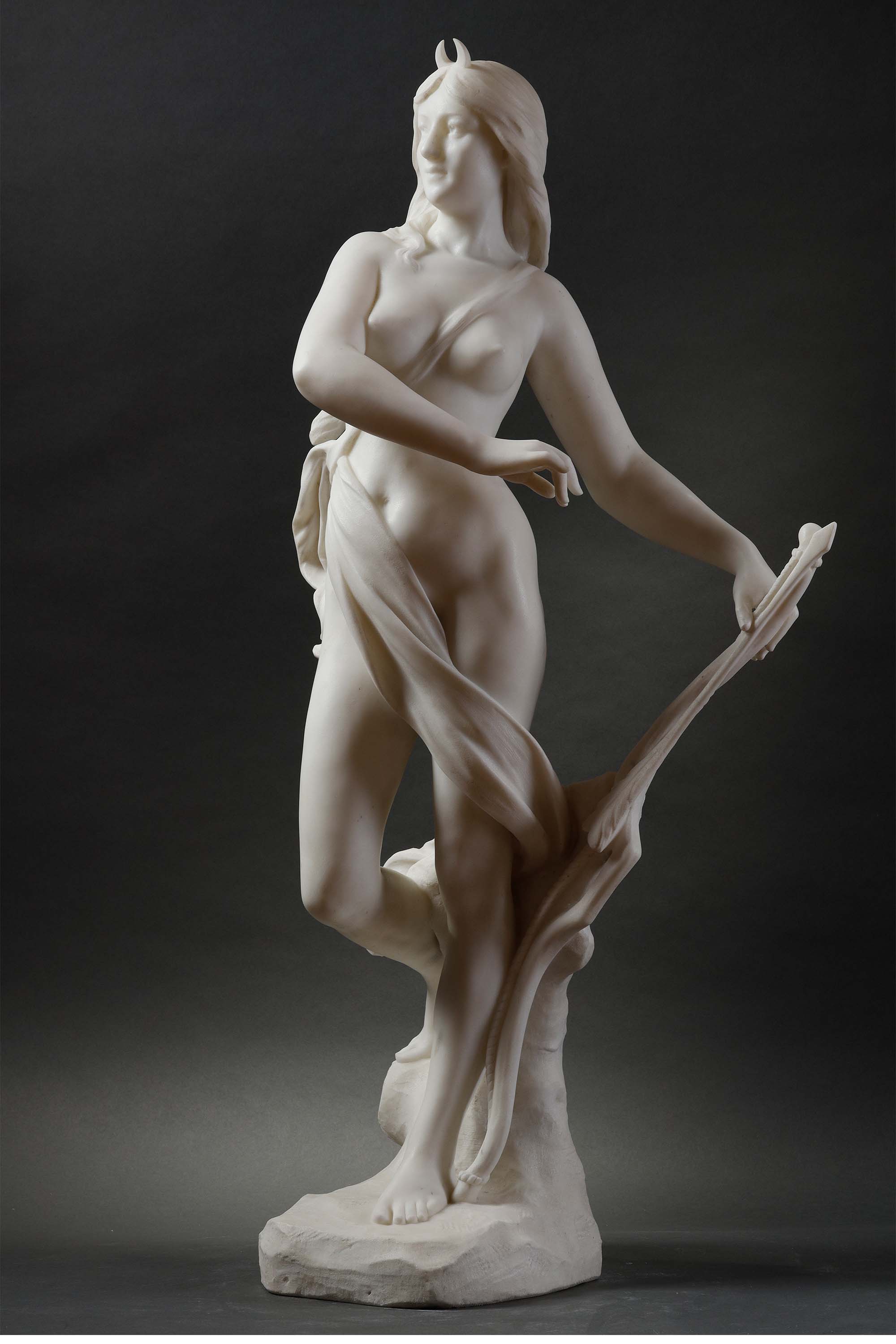 19世纪末20世纪初法国雕塑家Henri Godet签名创作人物主题卡拉拉大理石雕塑作品《黛安娜》
