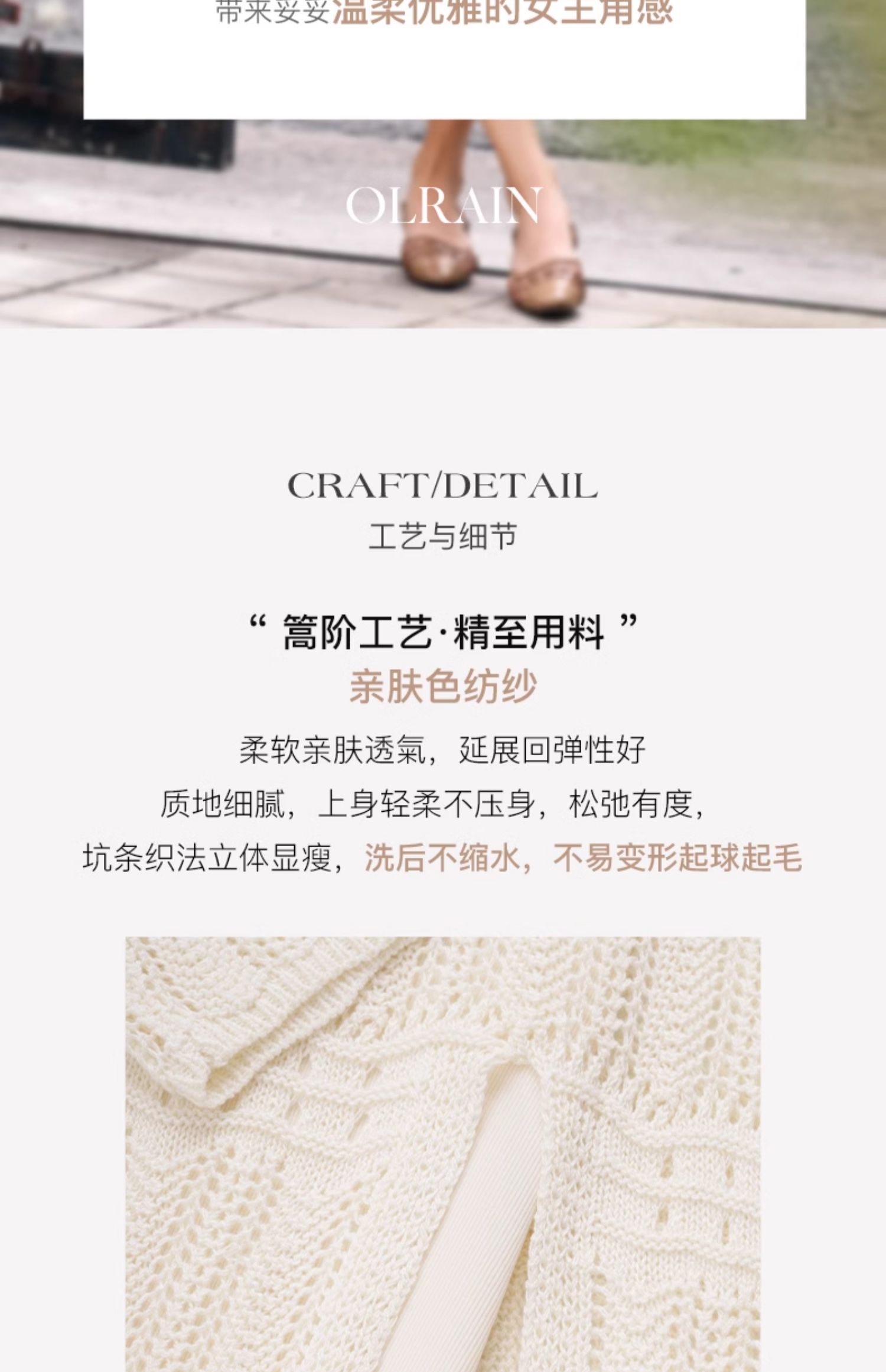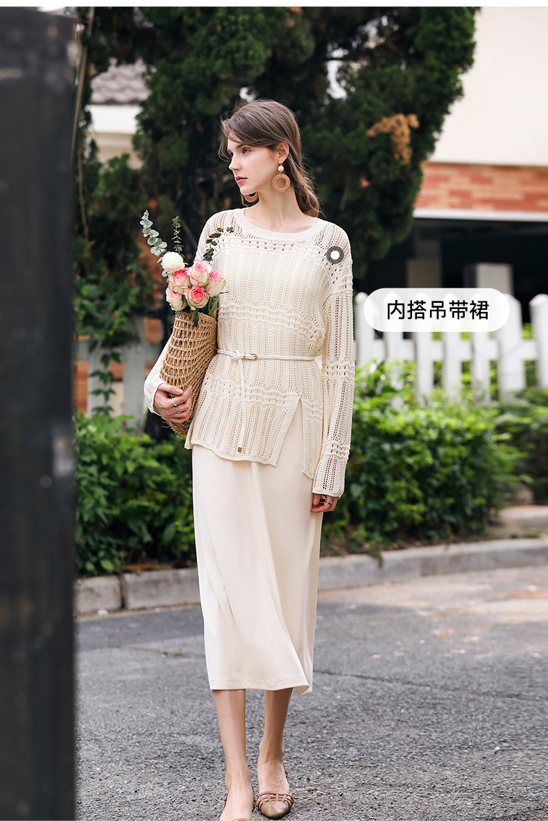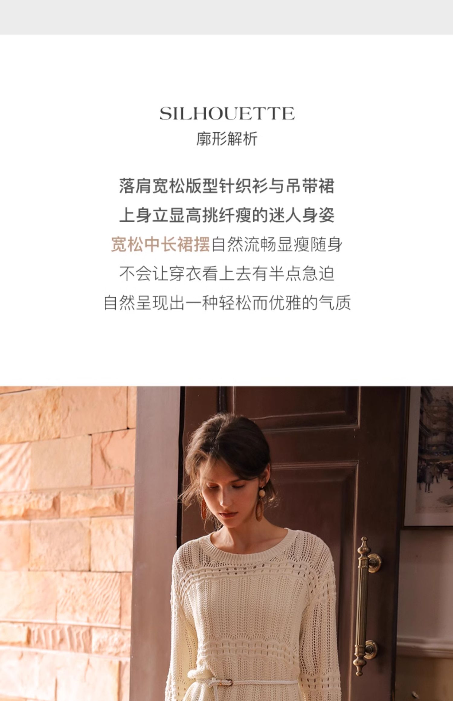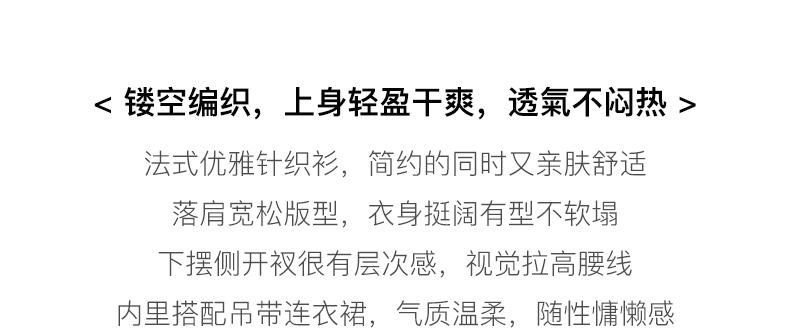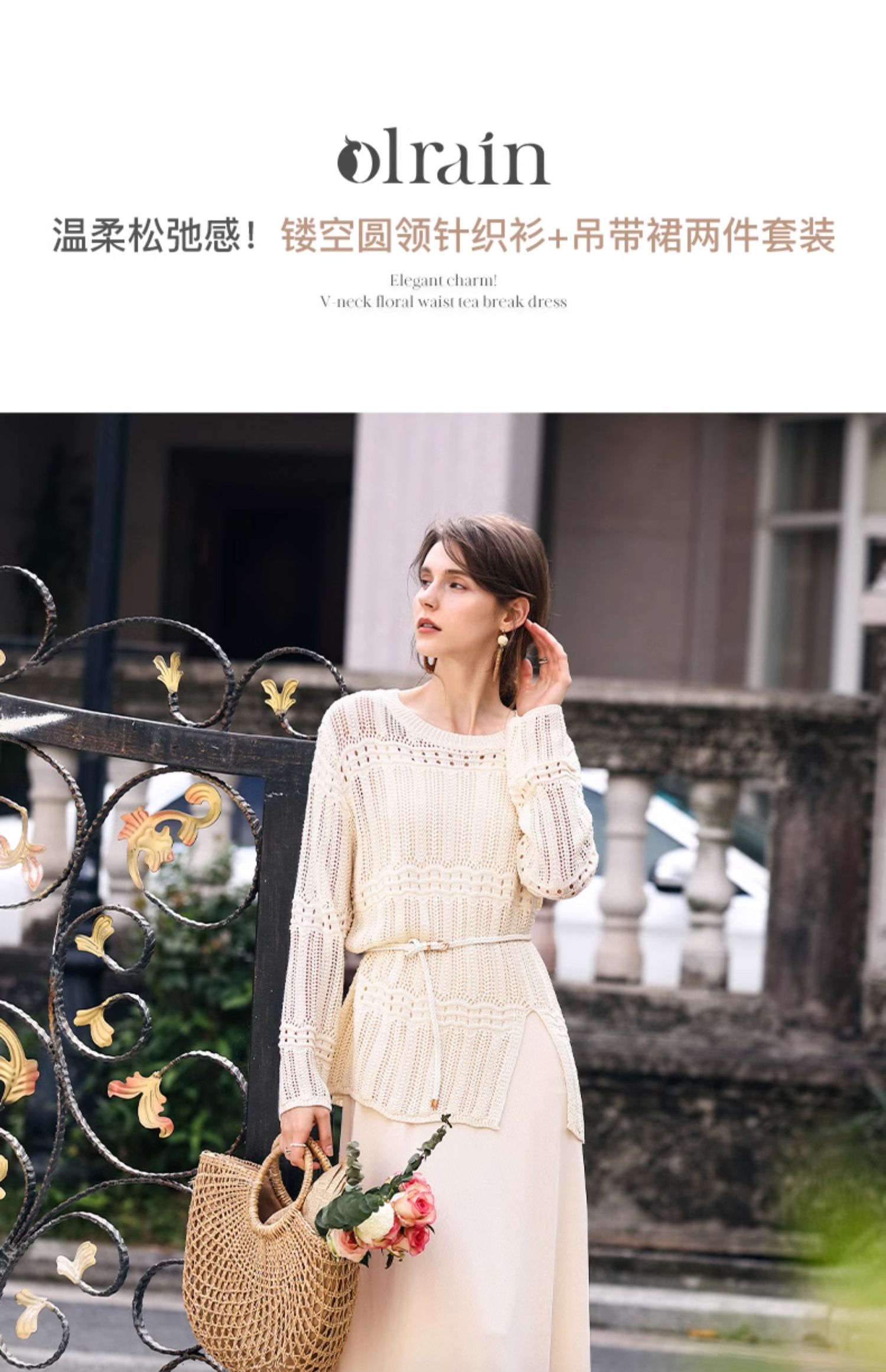 OLrain欧芮儿时尚套装女早春2024新款镂空针织衫吊带连衣裙两件套