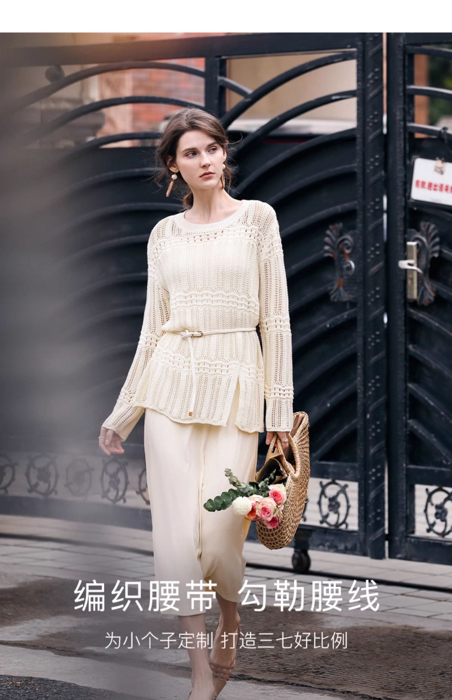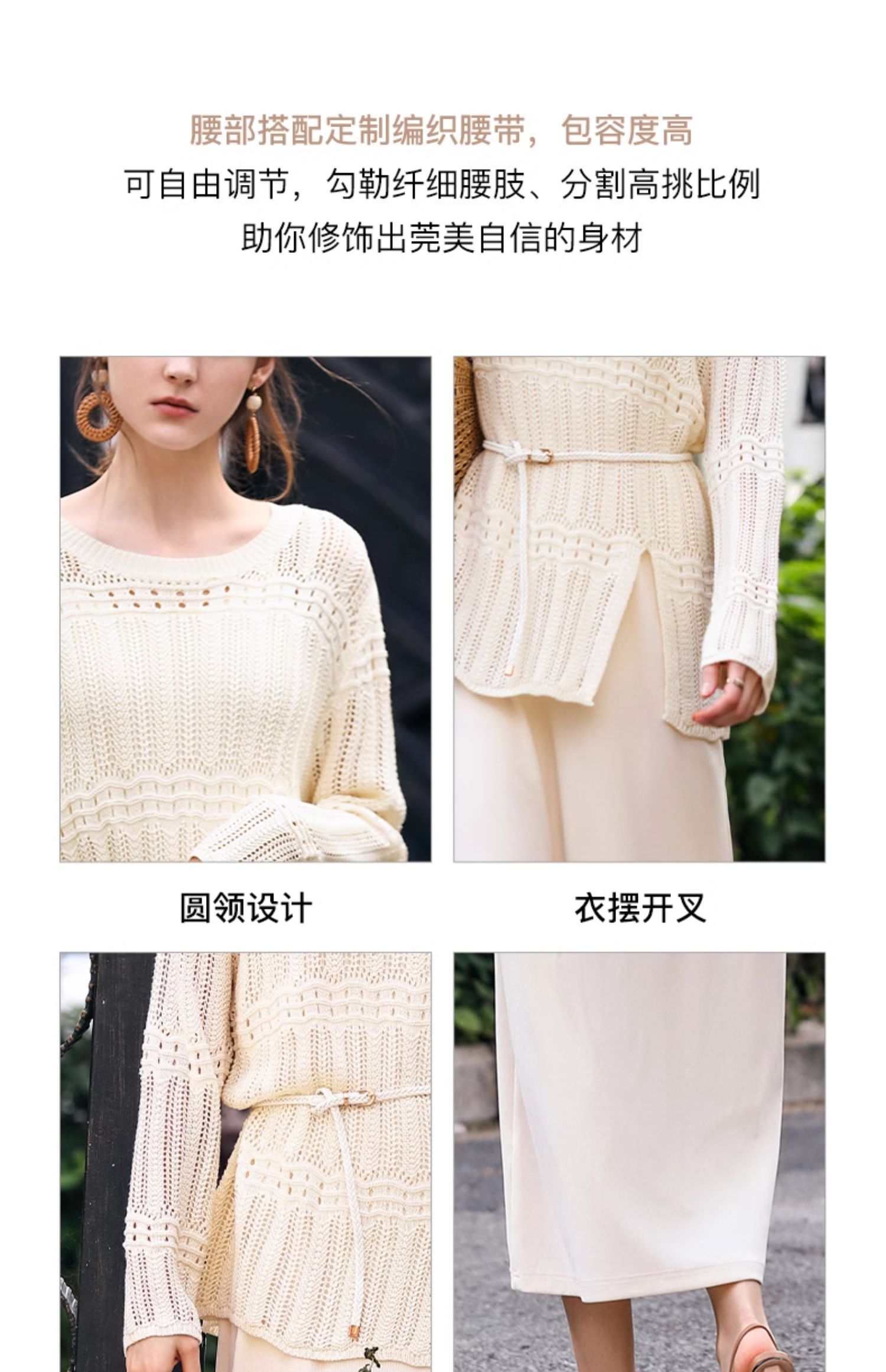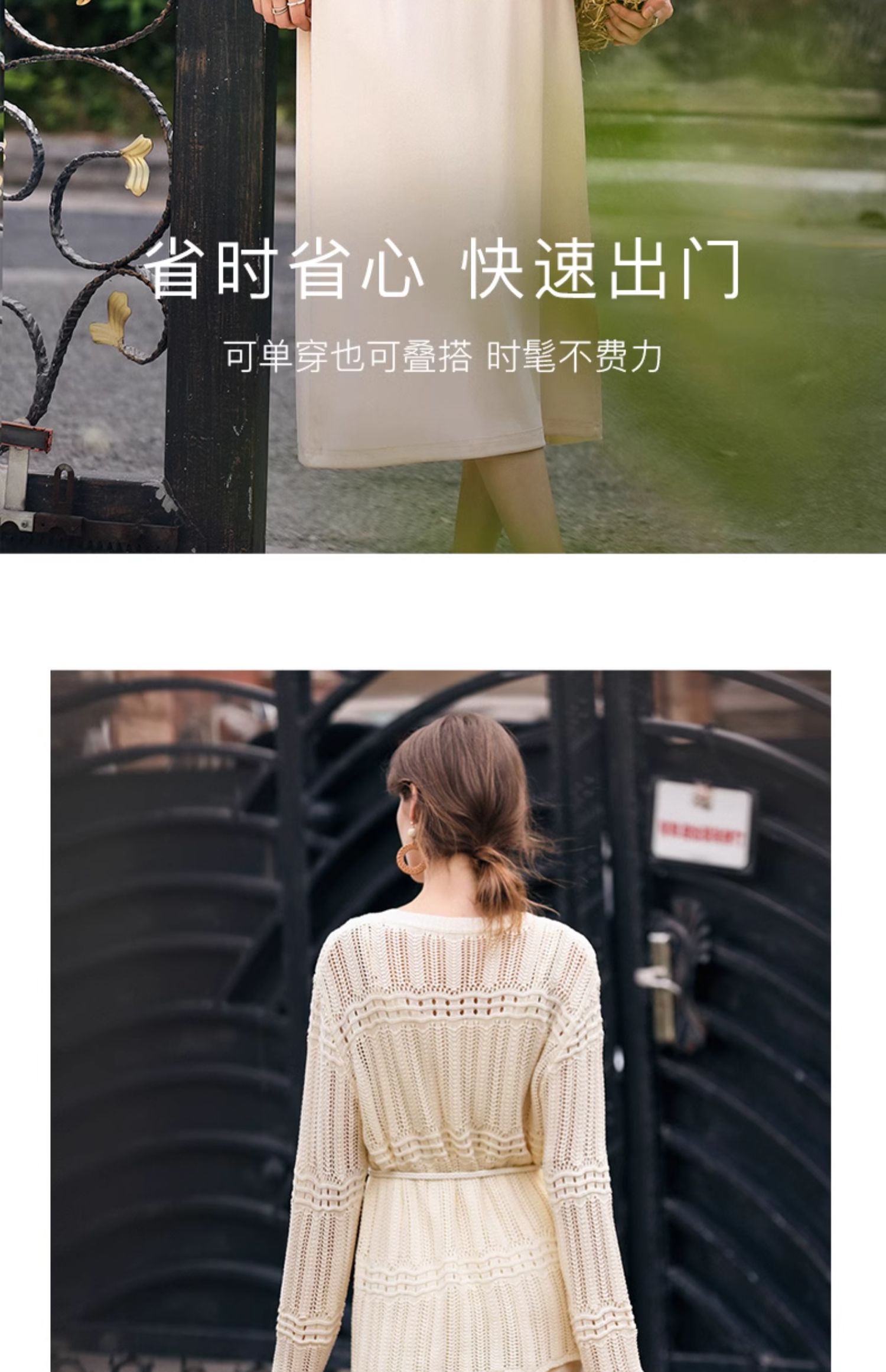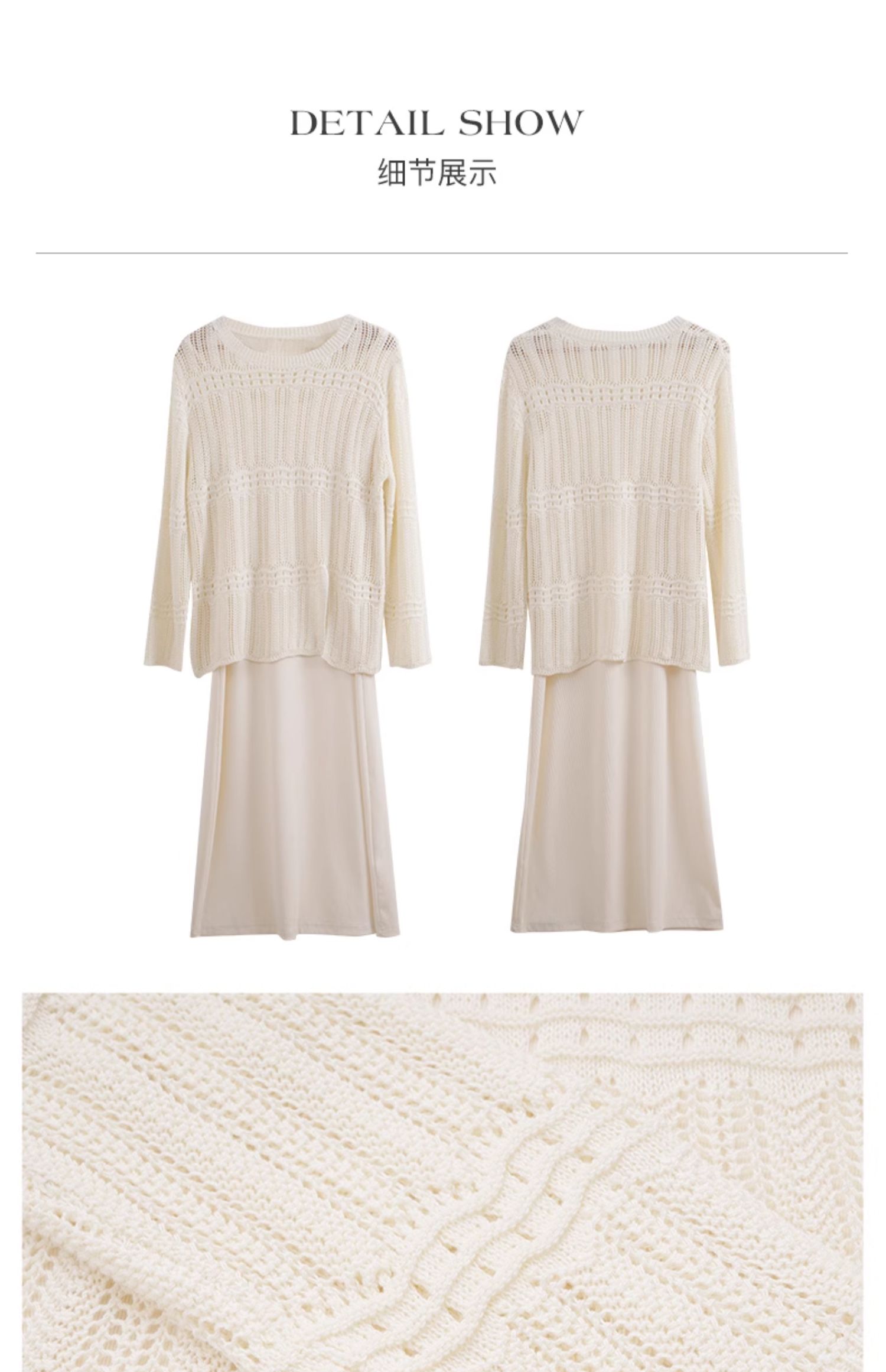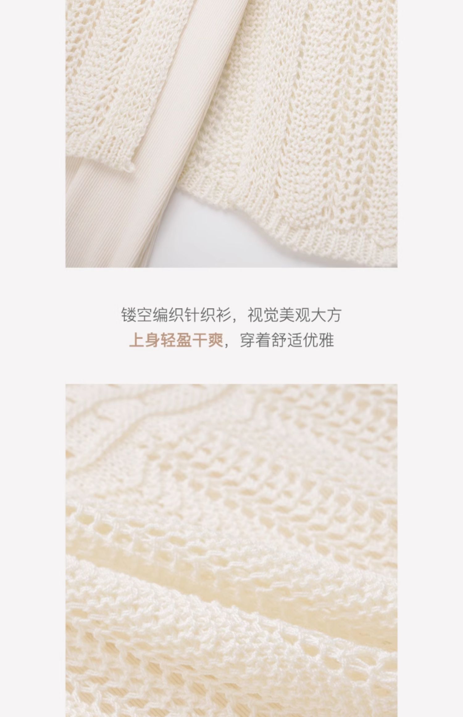 OLrain欧芮儿时尚套装女早春2024新款镂空针织衫吊带连衣裙两件套