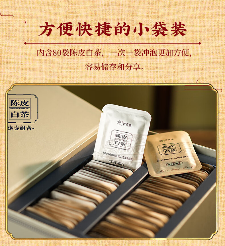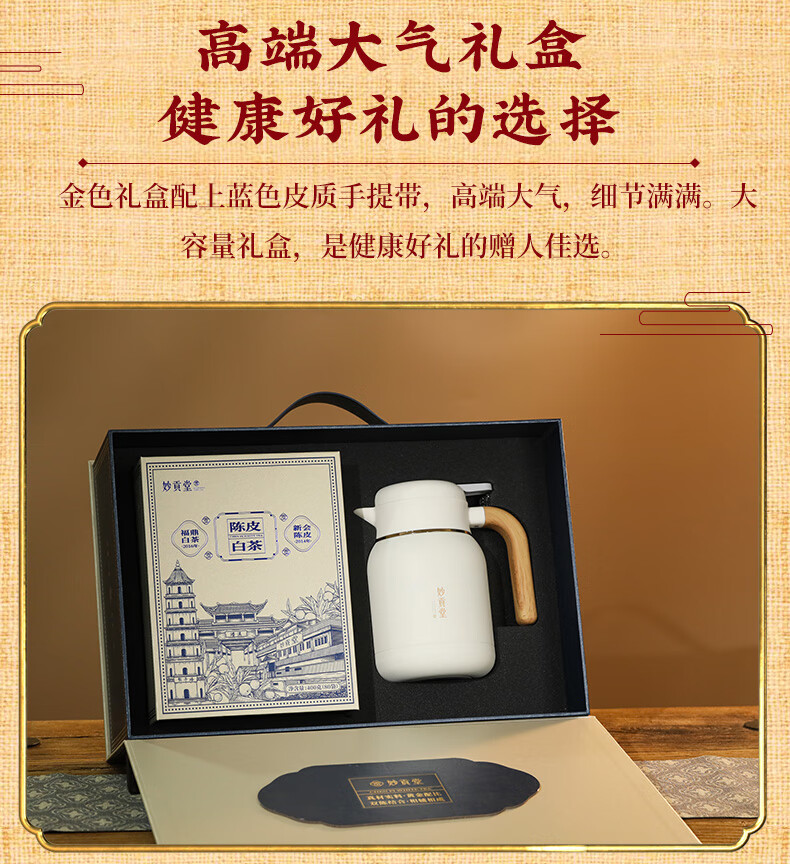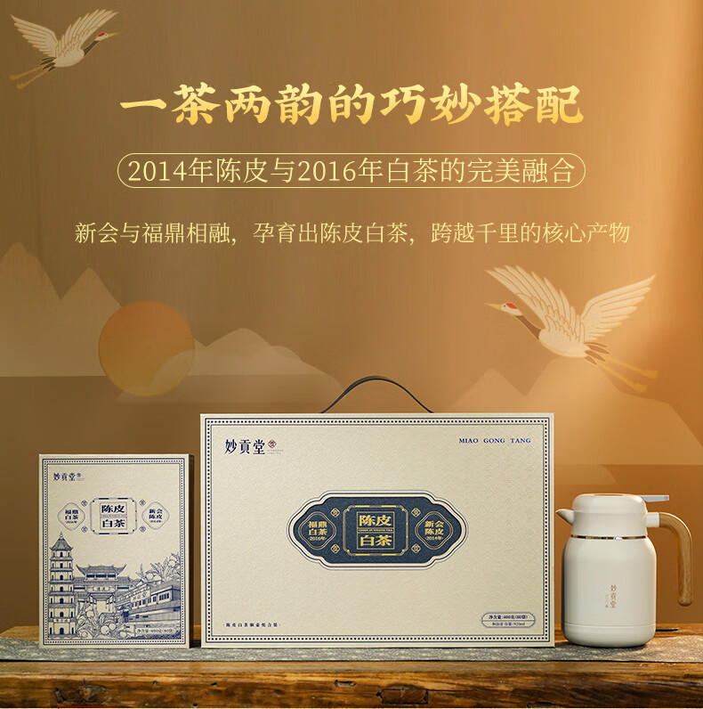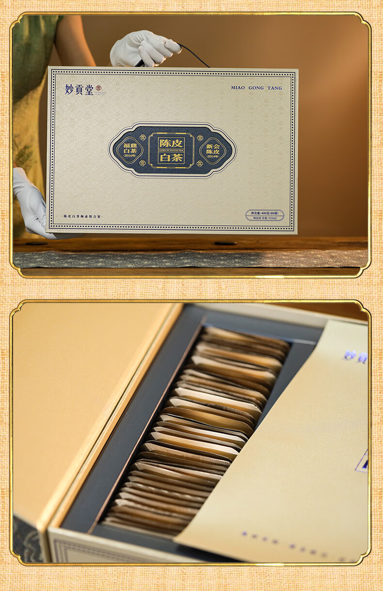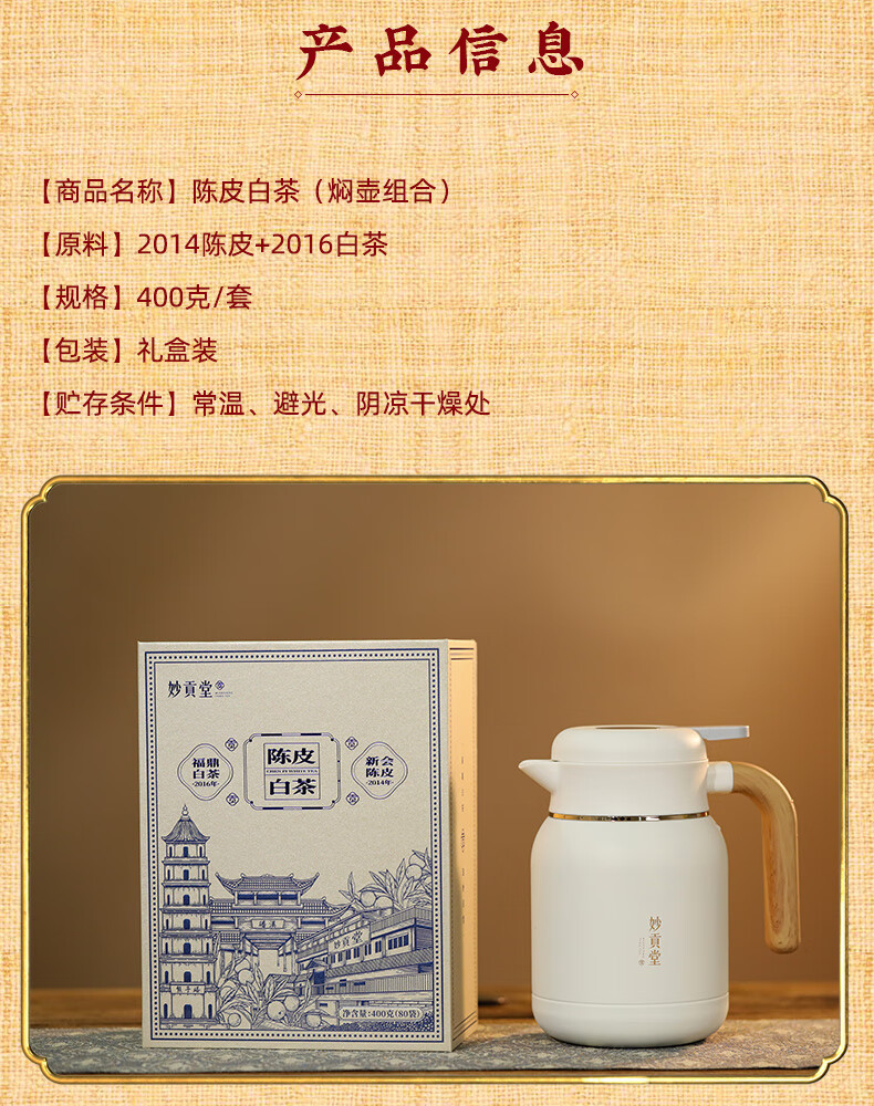 妙贡堂陈皮白茶焖壶组合2014年新会老陈皮搭配2016年福鼎白茶配闷泡壶 400克(80袋)