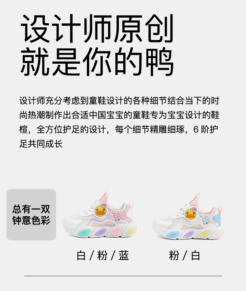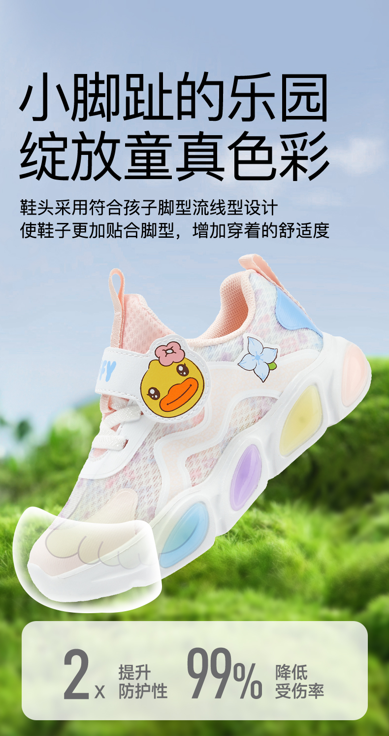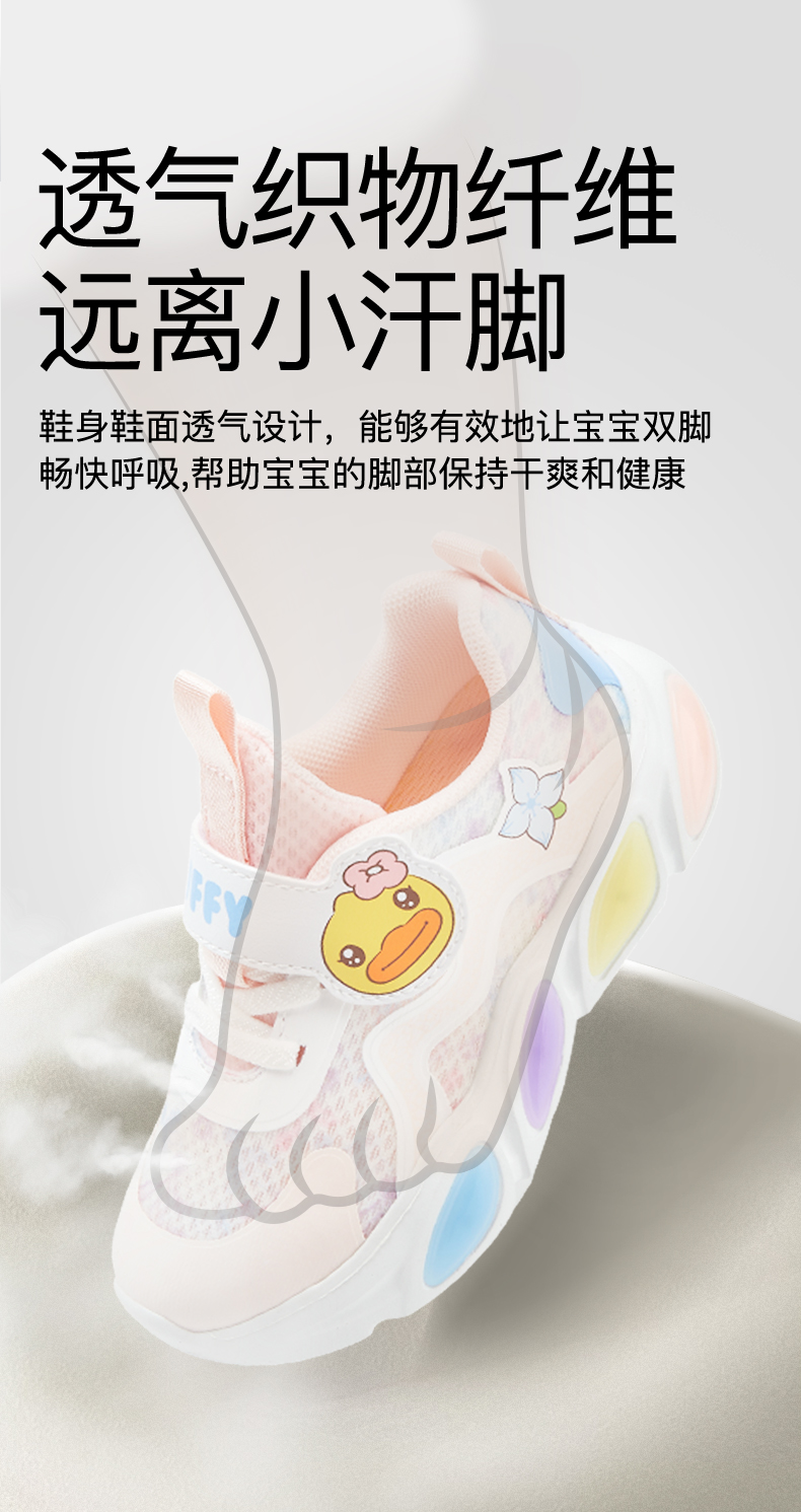 B.Duck小黄鸭童鞋女童运动鞋夏季透气儿童网面鞋宝宝鞋子23-30 B1686831