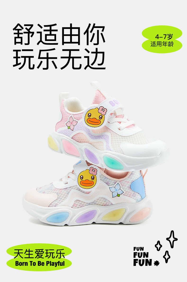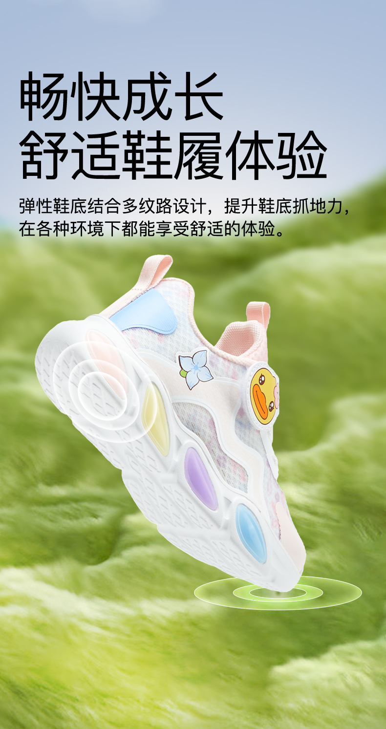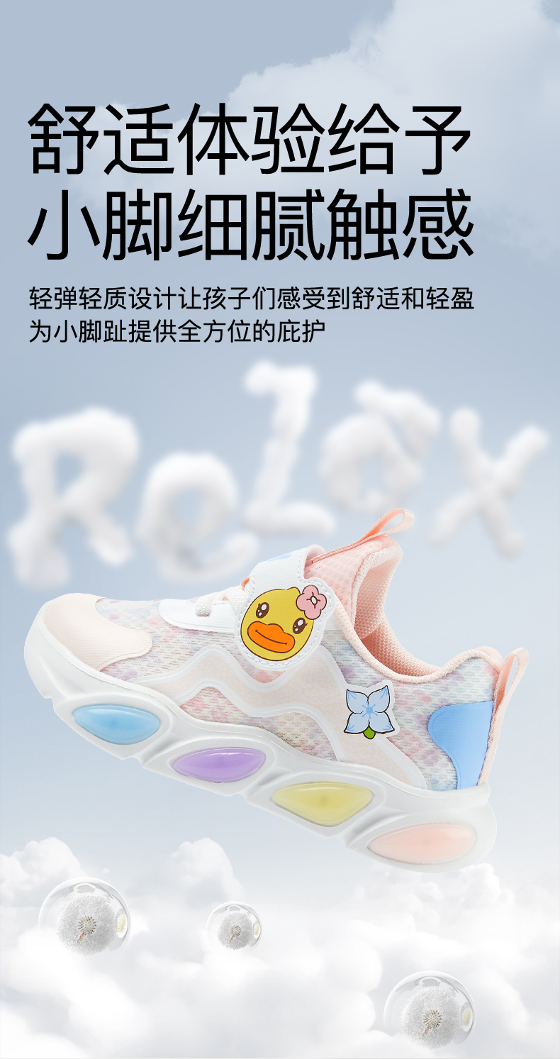 B.Duck小黄鸭童鞋女童运动鞋夏季透气儿童网面鞋宝宝鞋子23-30 B1686831