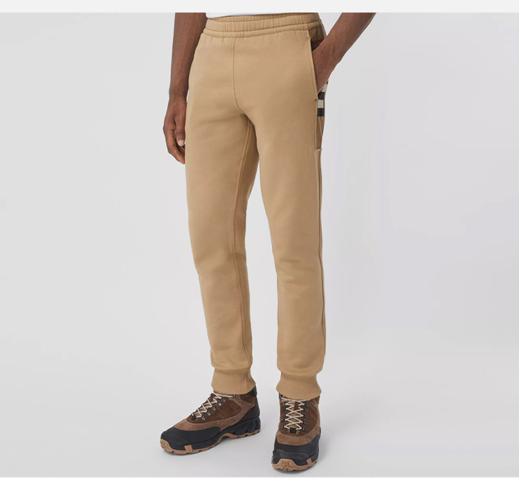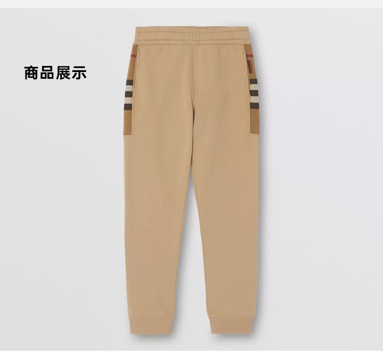 BURBERRY 巴宝莉 男士格纹裁片棉质混纺慢跑裤 卡其色 8045014 A1420
