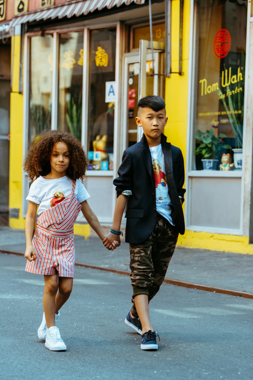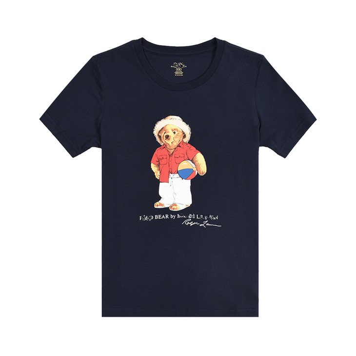 童装圆领短袖T恤!纯棉穿着舒适。正面精美泰迪熊主题图案印花,休闲百搭。