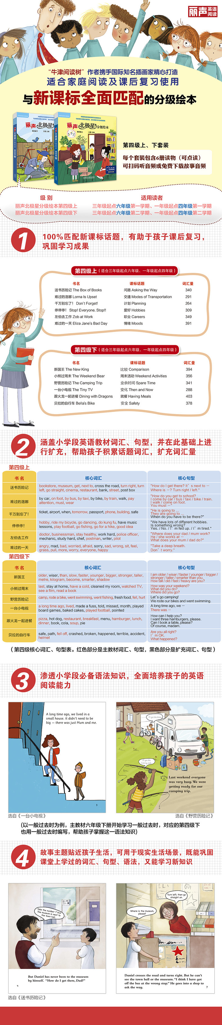 3.读物故事内容生动有趣,主题贴近孩子生活,在阅读复习的过程中,孩子既可以巩固课堂上学过的词汇,又可以学习新知识;