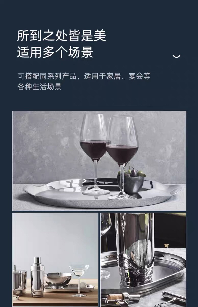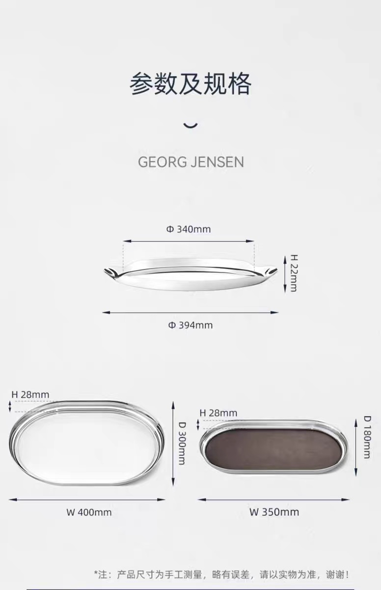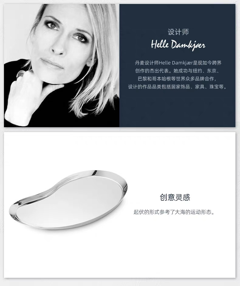 Georg Jensen乔治杰生不锈钢托盘西餐餐盘酒具甜品盘子北欧装饰