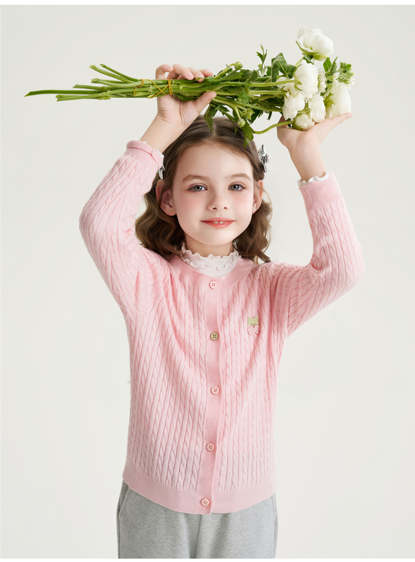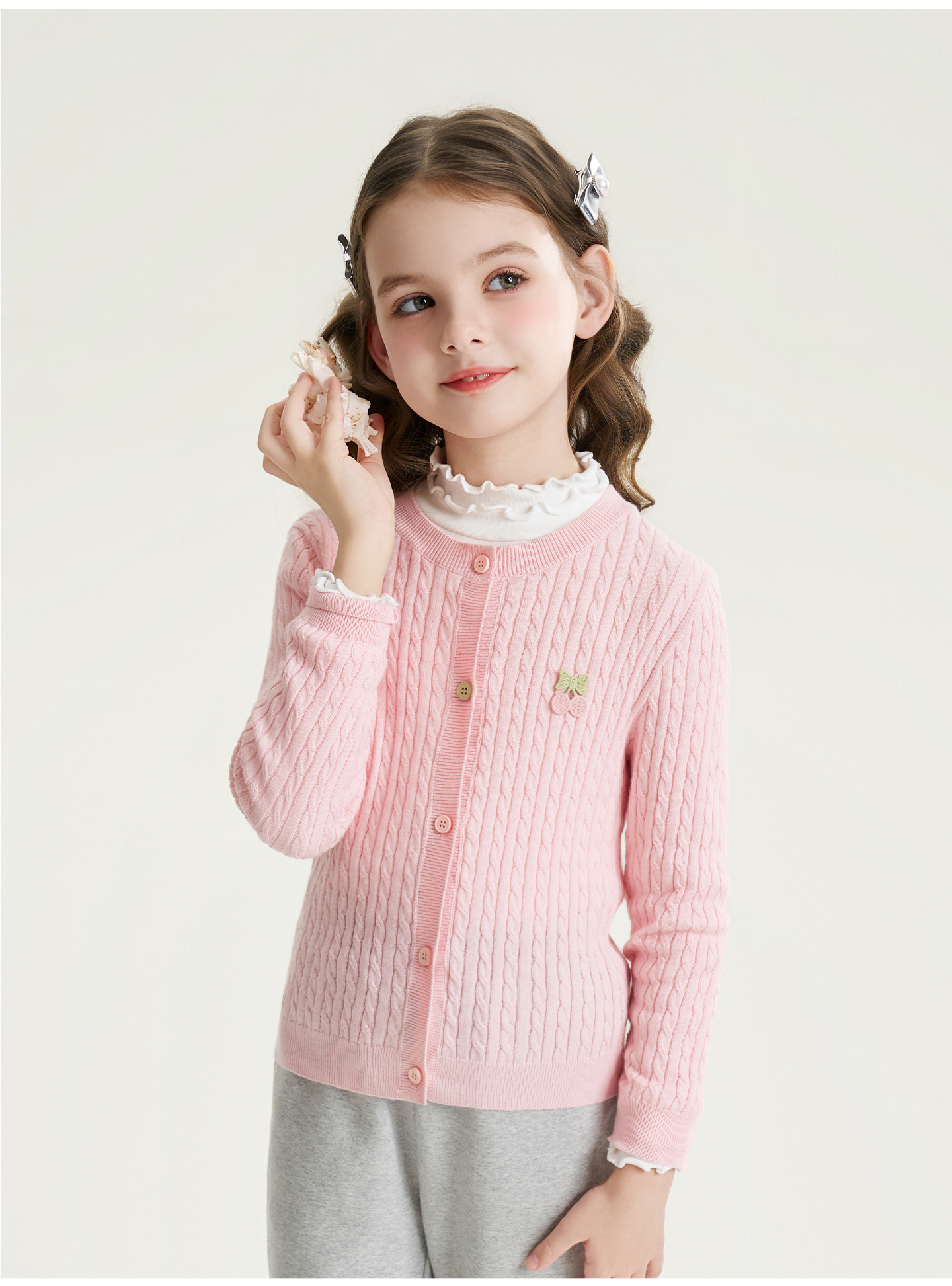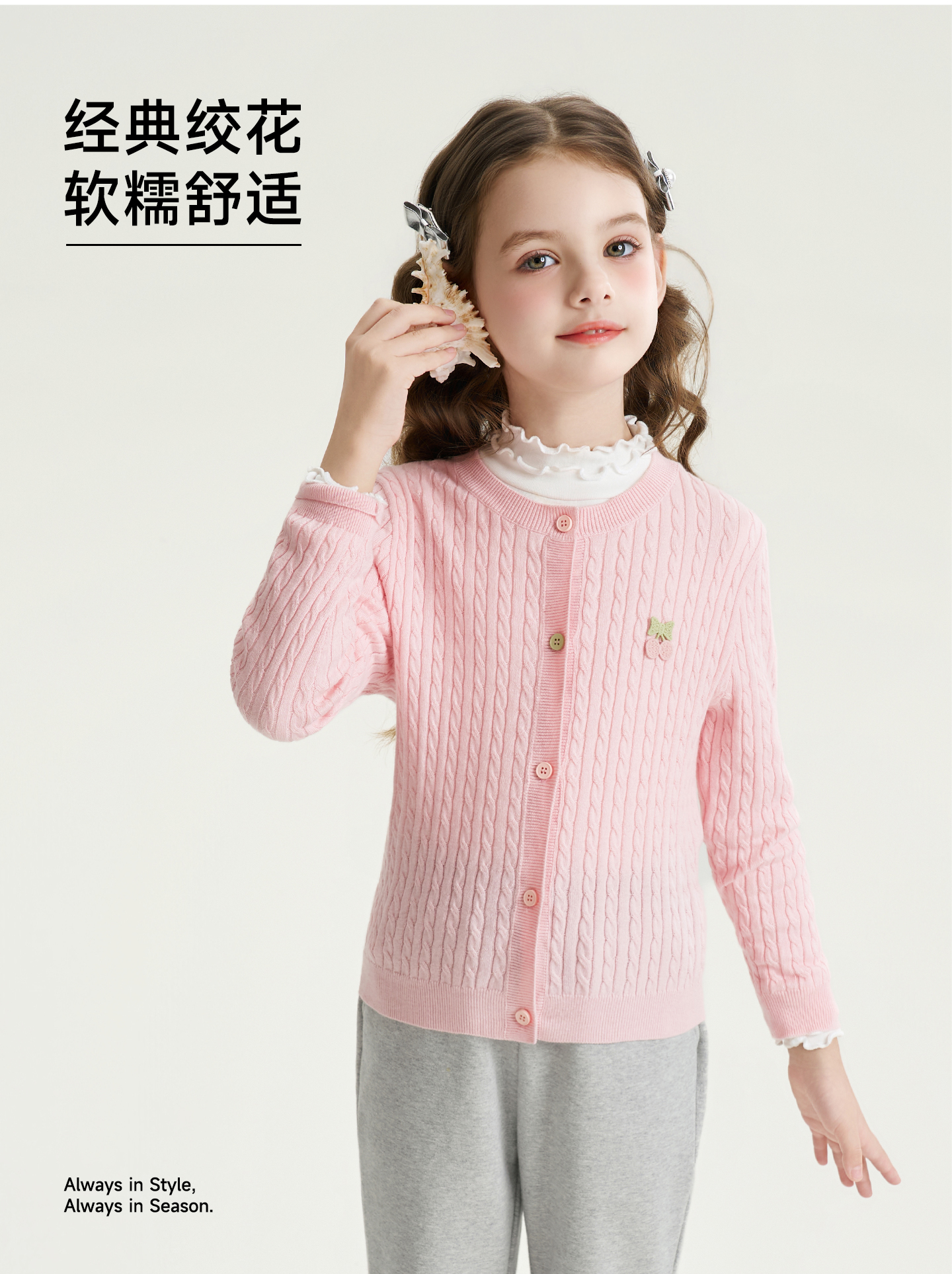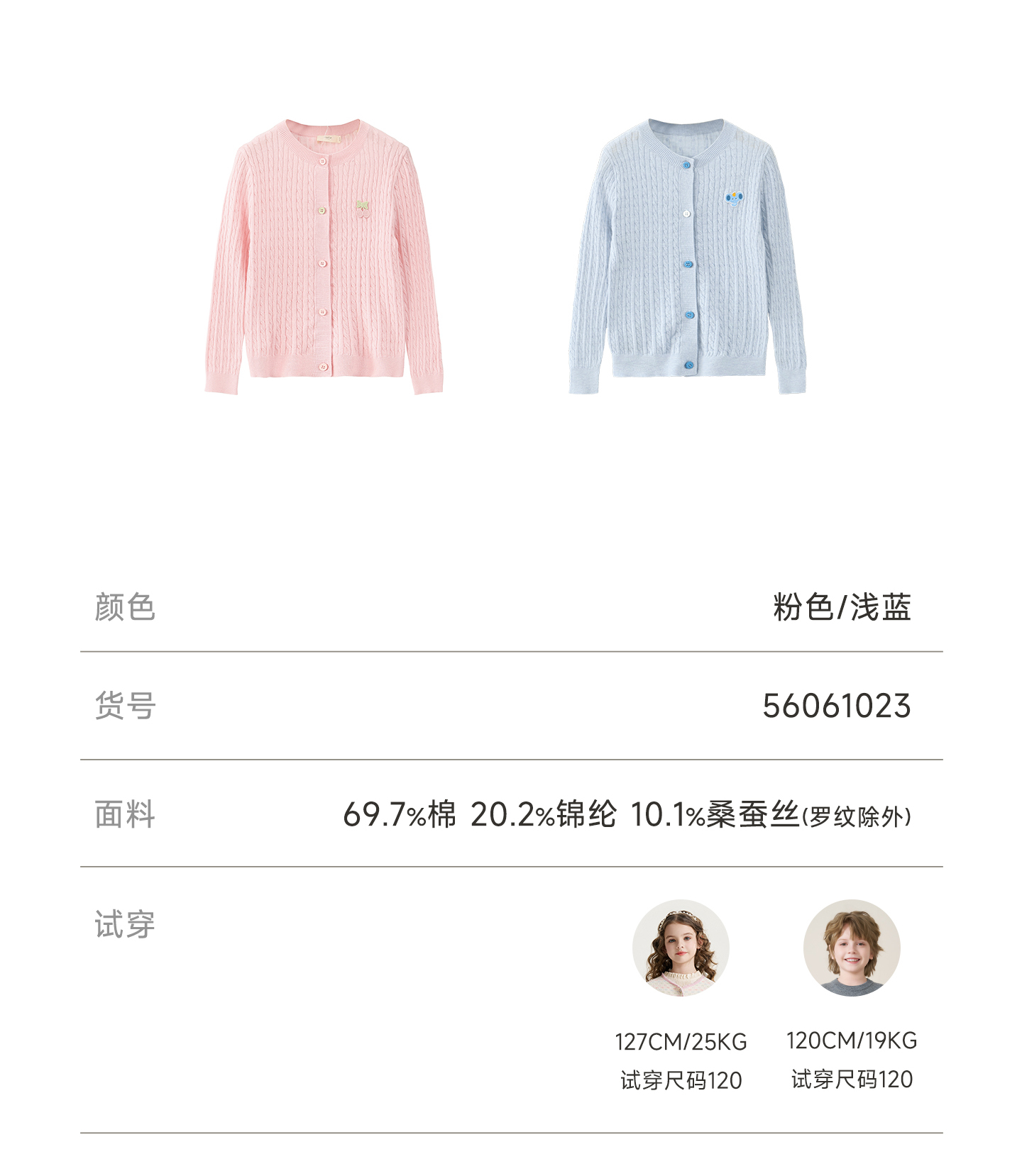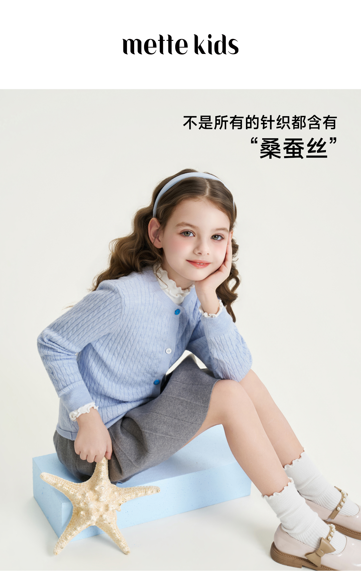 mettekids儿童针织衫2026春新款女童洋气绞花桑蚕丝男童毛衣开衫